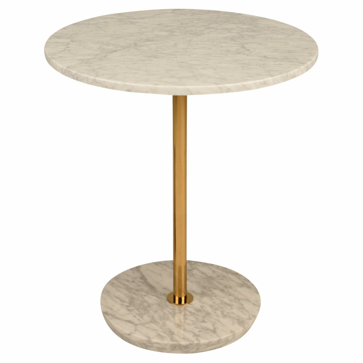 Give your space a designer look with the Nuevo Aida Round Side Table. It has a genuine marble tabletop and matching round base. The pole is made from sturdy stainless steel and has a polished gold finish. It’s an ideal choice for enhancing transitional and global themes, and the table will look great displayed in pairs at the sides of your bed or sofa.