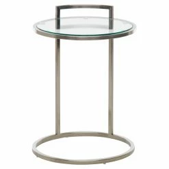 The Nuevo Lily End Table is simple but effective. This piece is framed in brushed stainless steel for a sturdy structure you can rely on. The table top is thick, clear tempered glass, extra strong and extra safe, so worry not. The frame is one-of-a-kind in its design, featuring a ring for a base and another to frame the top, joined by two beams at one end. You may never have imagined that something so unadorned could be so eye-popping. This table measures 16W x 16D x 22H inches.