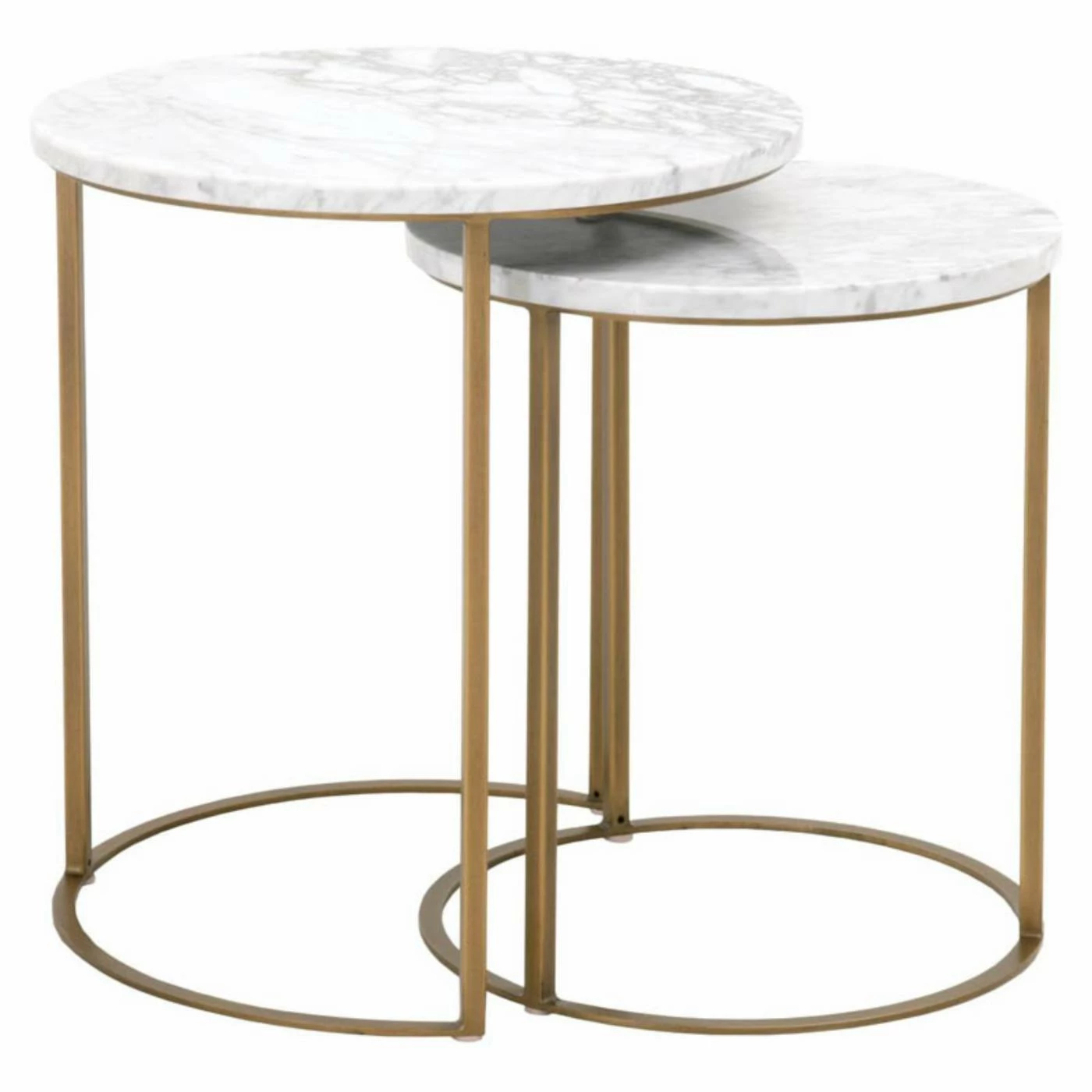 Whether you live in a studio or a sprawling corner home, space is at a premium. The Orient Express Furniture Carrera Round Nesting Accent Table makes the modern most of what youβve got. Each of the two round nesting tables in this set is framed in slim, squared-edge metal. The larger tableβs base features a sleek cutout to accommodate the smaller tableβs full round base; situate the tables together for everyday use and split them when guests drop by (or when you need to spread out with late work and takeout). Imported Italian white Carrera marble elegantly tops each table. Choose from the available metal finish options; each set includes a one-year limited manufacturerβs warranty.