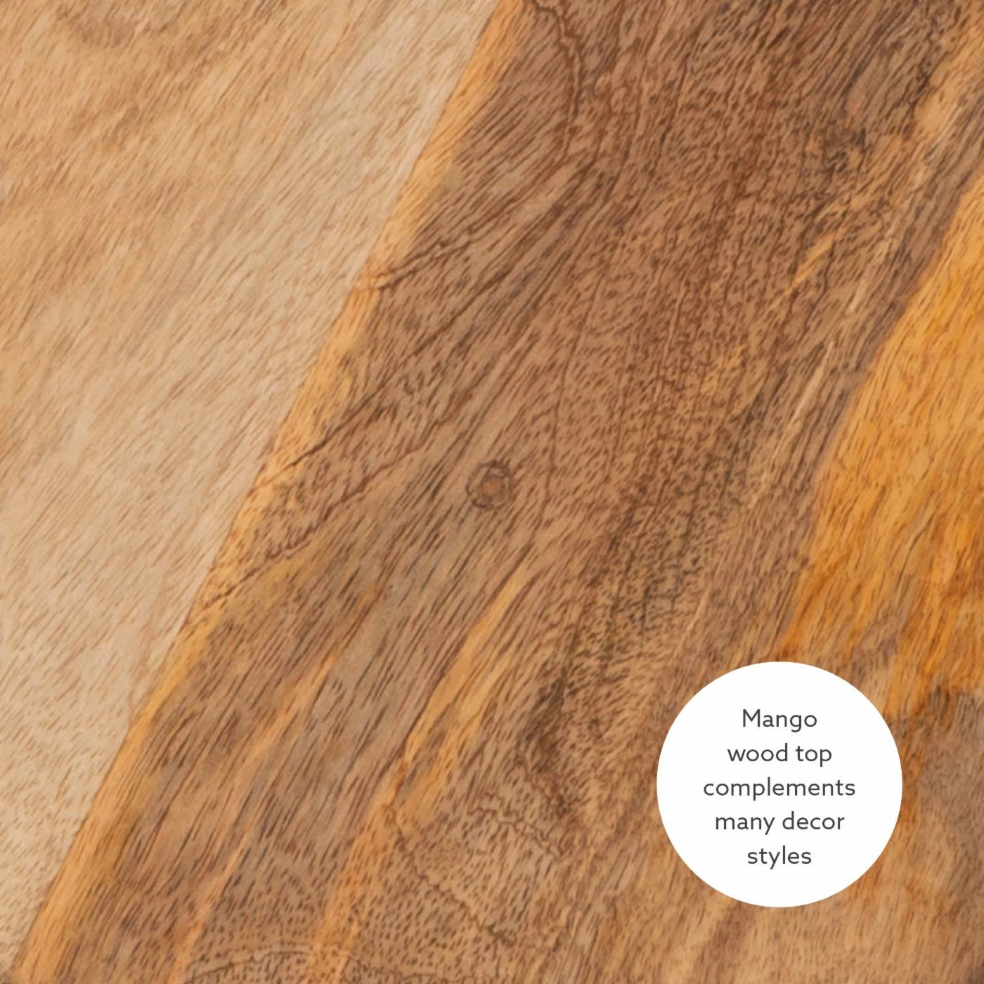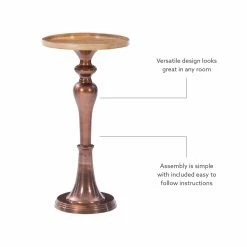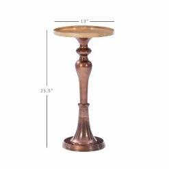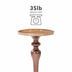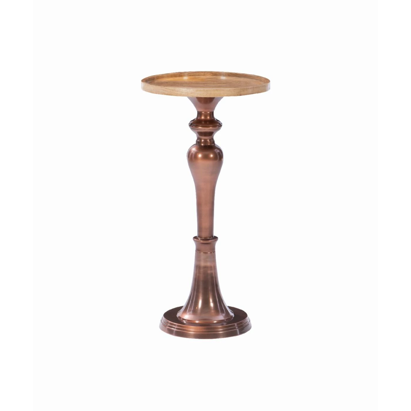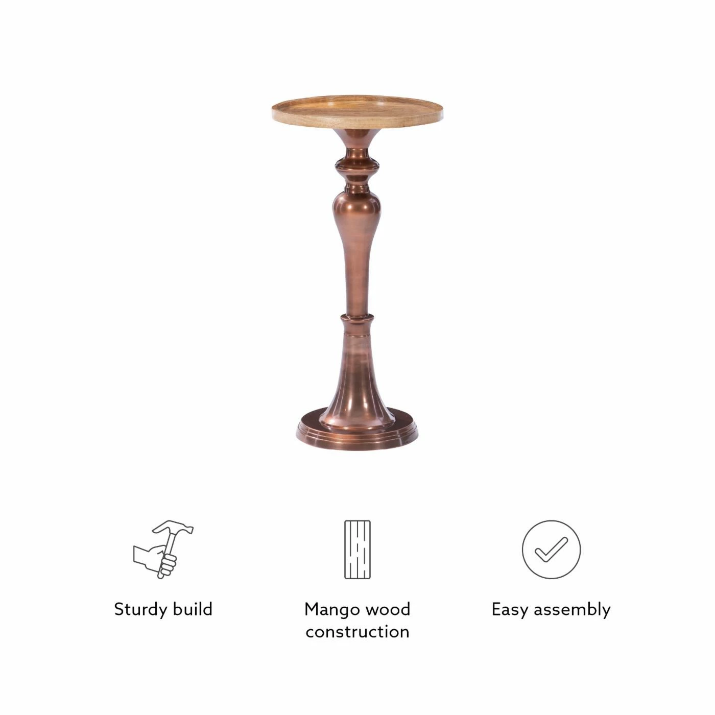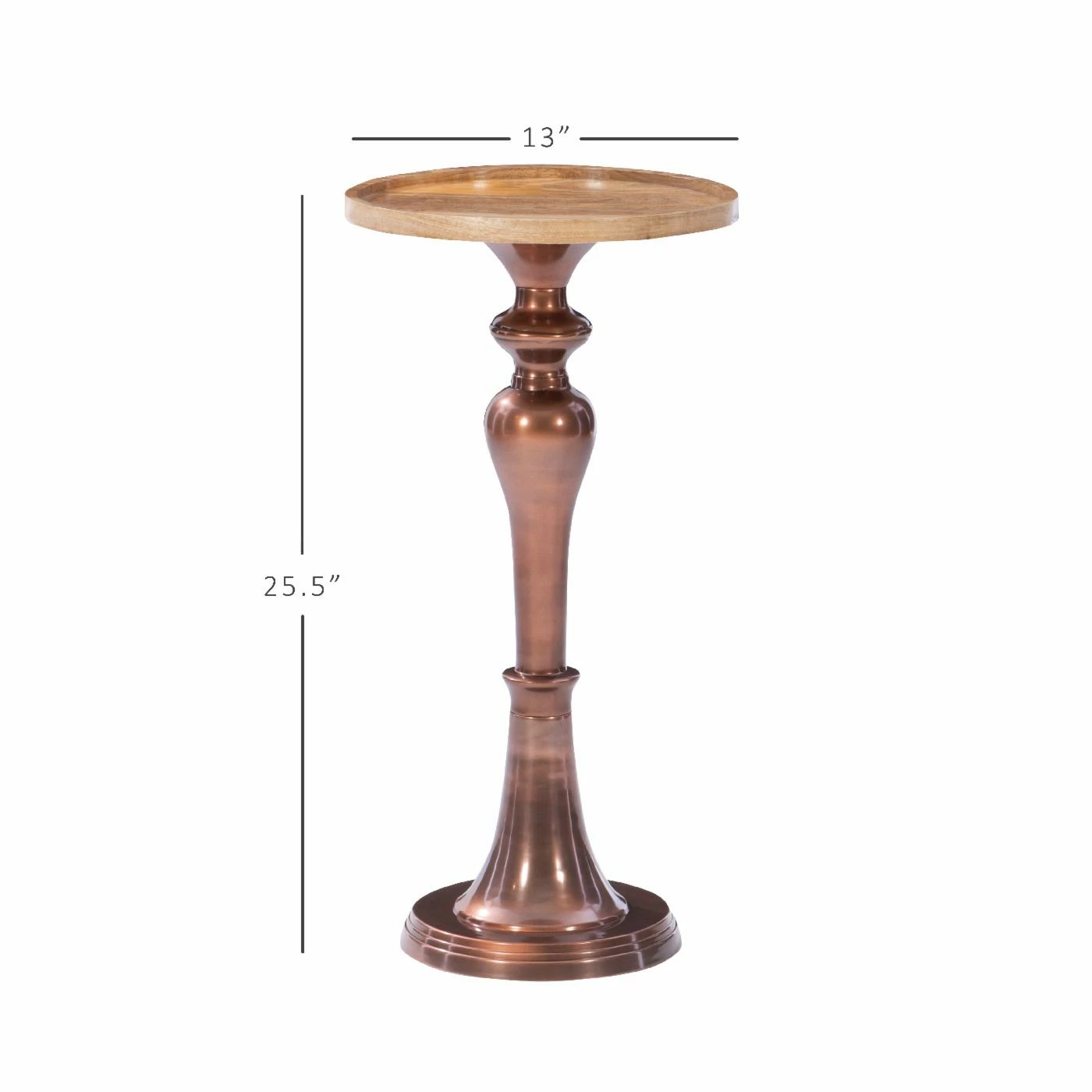 - Mango wood top and copper plated aluminum pedestal