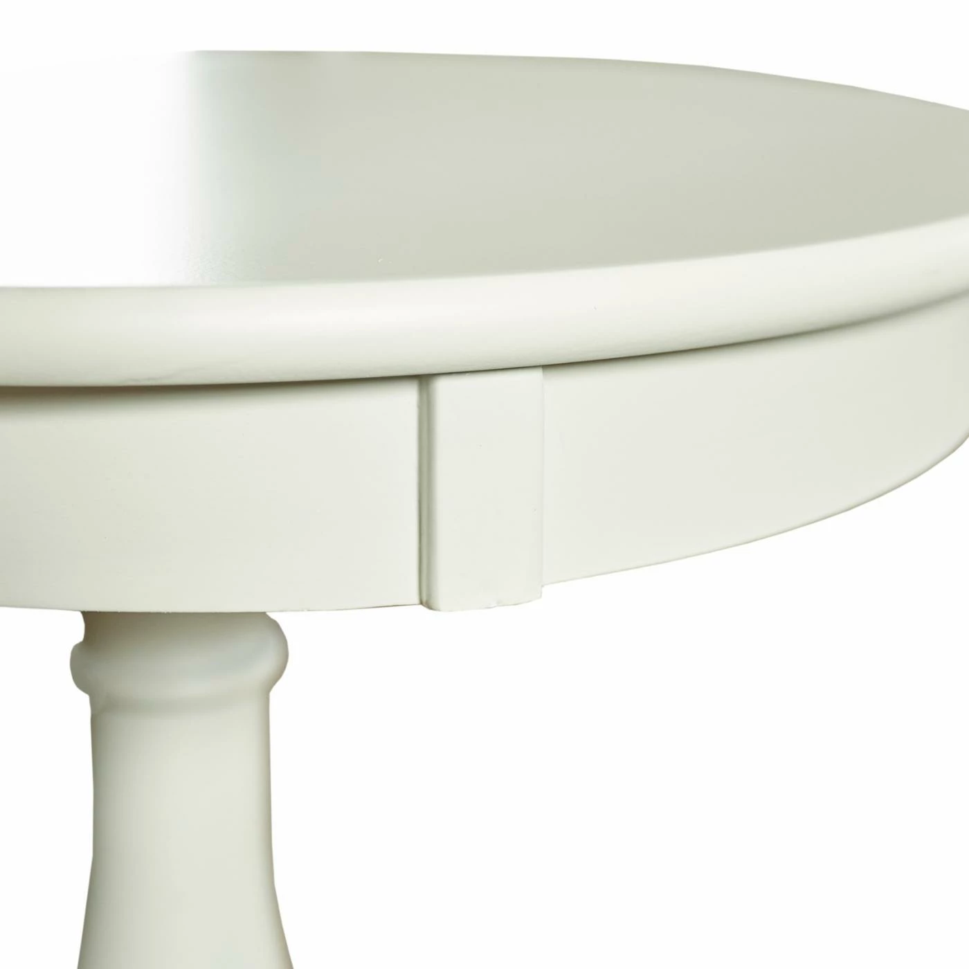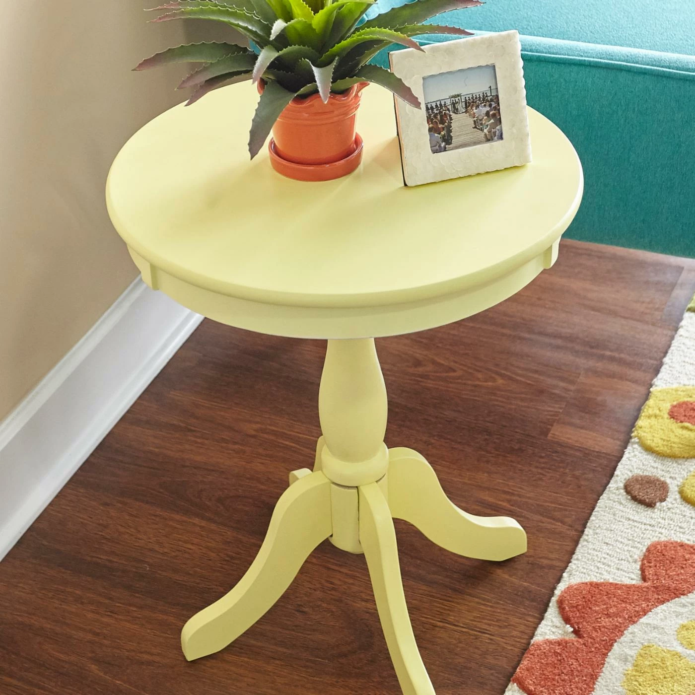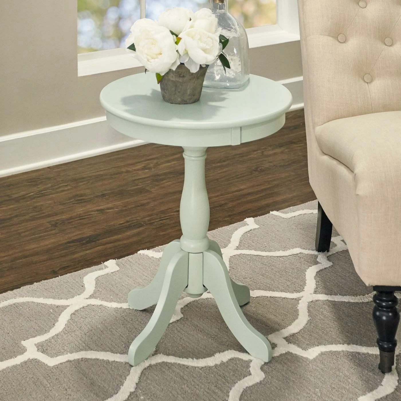 The timeless Powell Round End Table stands on a turned pedestal and leg base that works with any dΓ©cor. Customize this end table by choosing from available finish colors. Its round top is 18 inches across, making this end table perfect for displaying a variety of items.