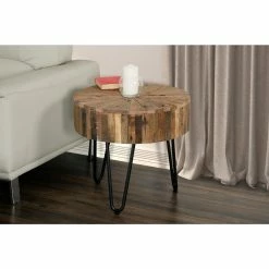 Hot Sale π Round End Tables & Side Tables Primo International Sawyer Reclaimed Wood & Iron End Table β€οΈ