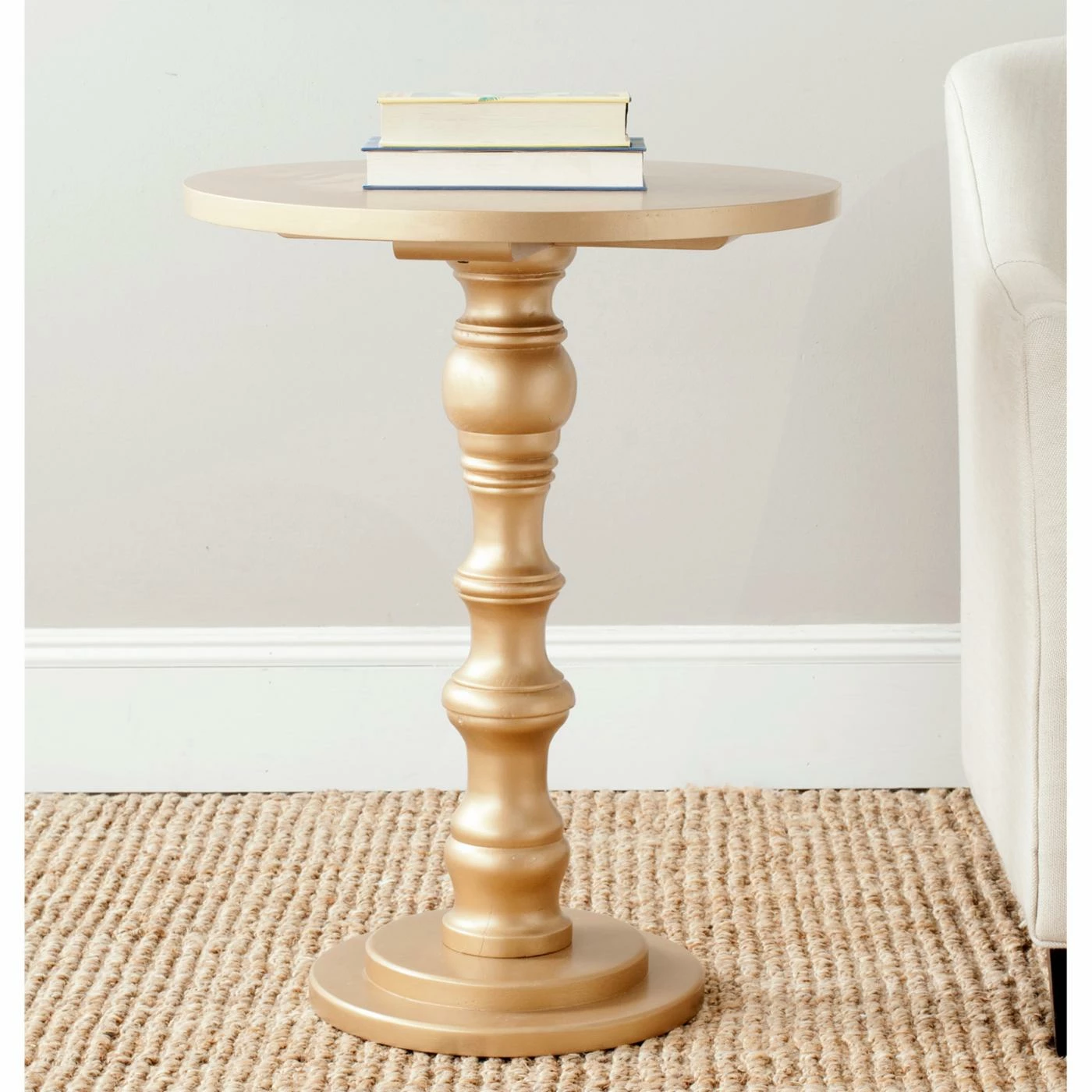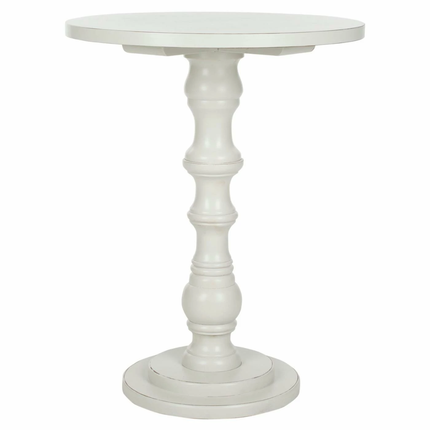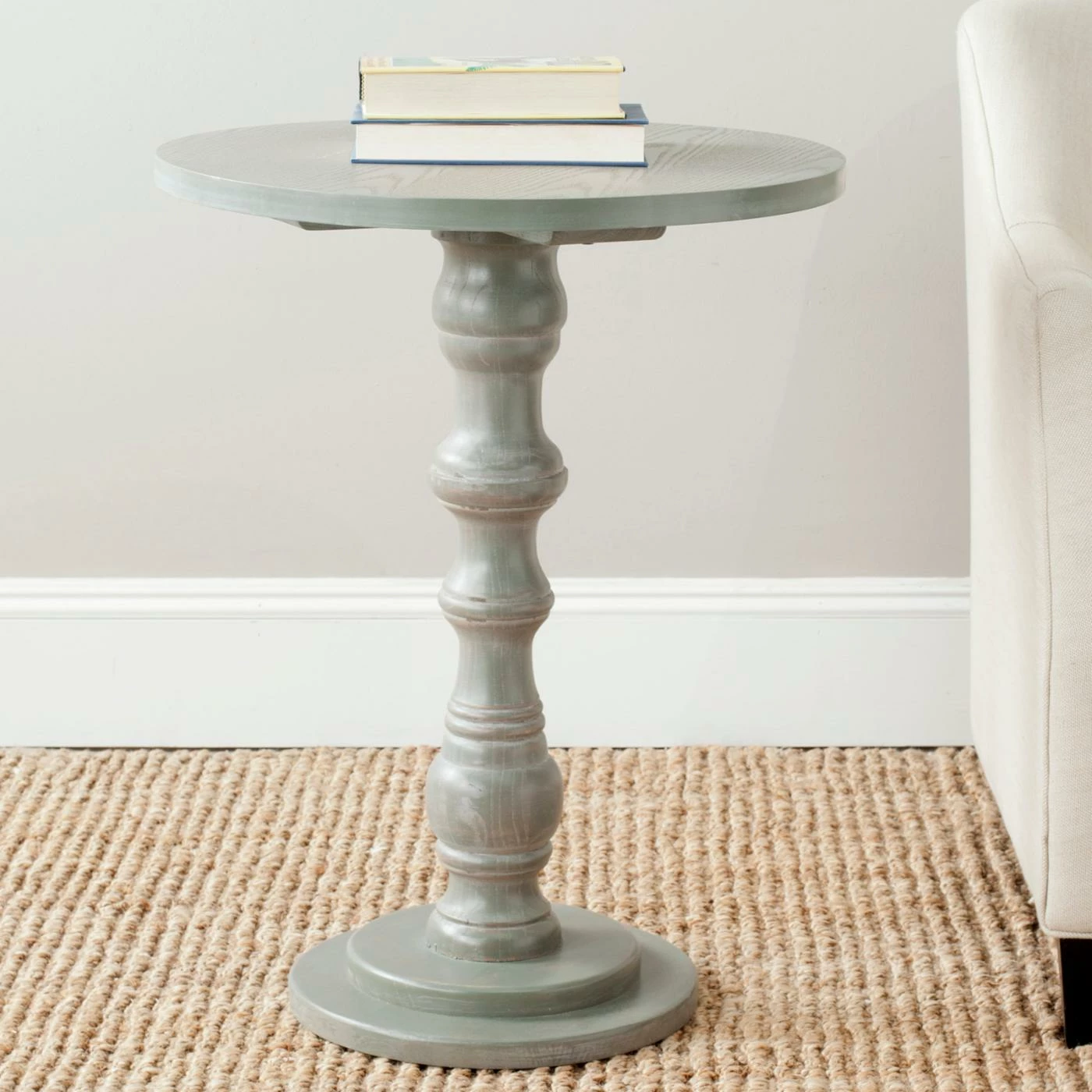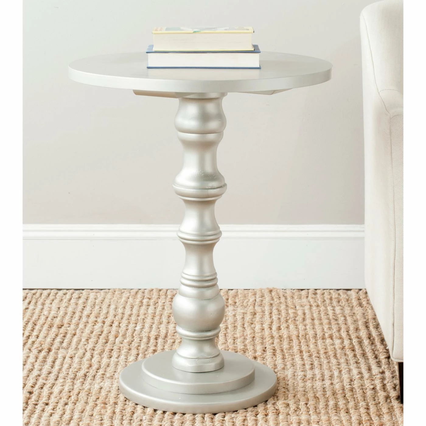 No matter which finish you choose, the Safavieh Greta Accent Table is sure to light the way to sleek, original style. The traditional look of the candlestick base is updated by an array of vibrant choices. The perfect place to sit your book or a favorite accessory, it’s gorgeous in any room. Available in Ash Grey, Dark Teal, Gold, Off White, or Silver.