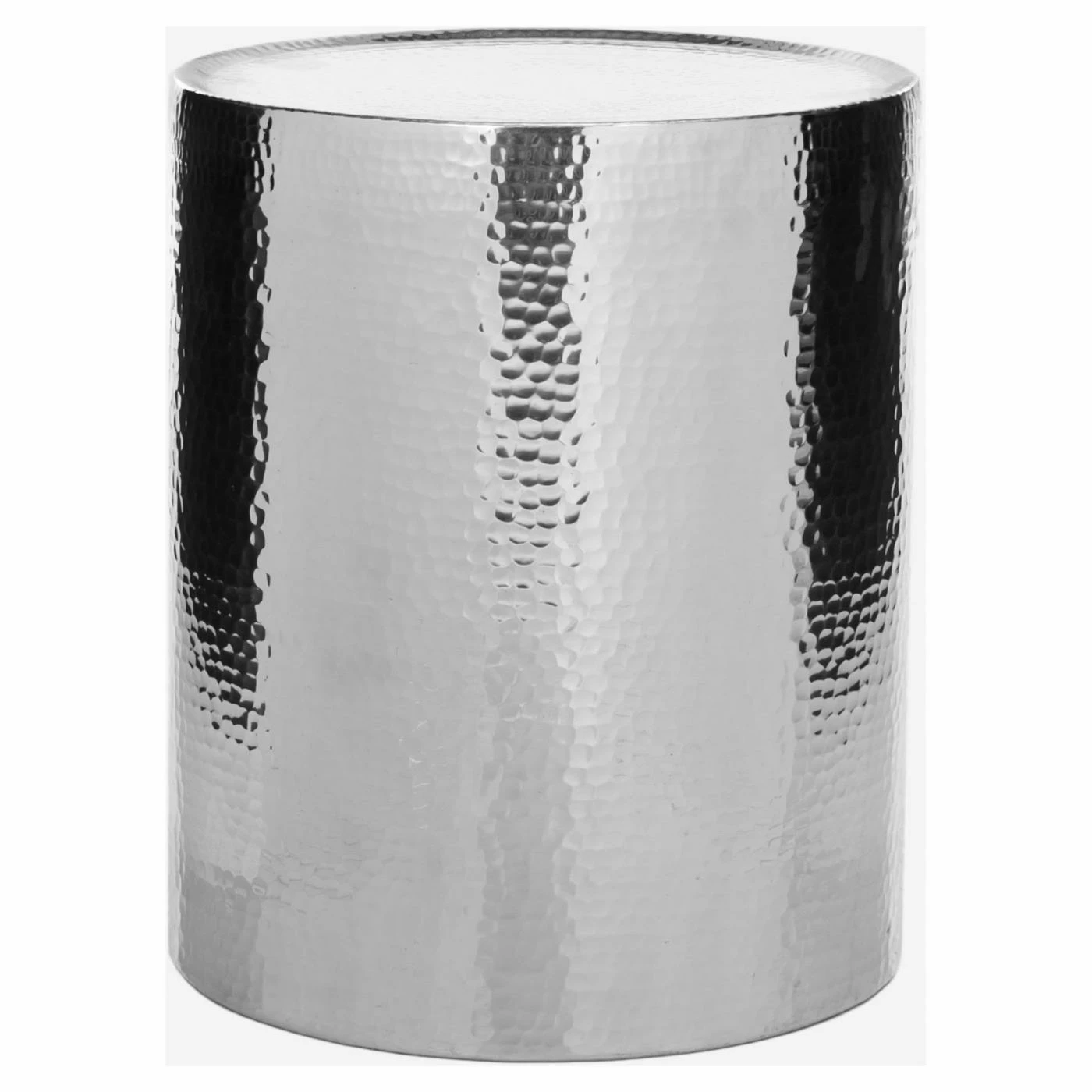 Make your living room gleam with the Safavieh Polonium Side Table. The robust aluminum barrel side table is polished to a mirror-like shine that draws the eye. To enhance its luminous quality, the sides and top of the table are hammered.