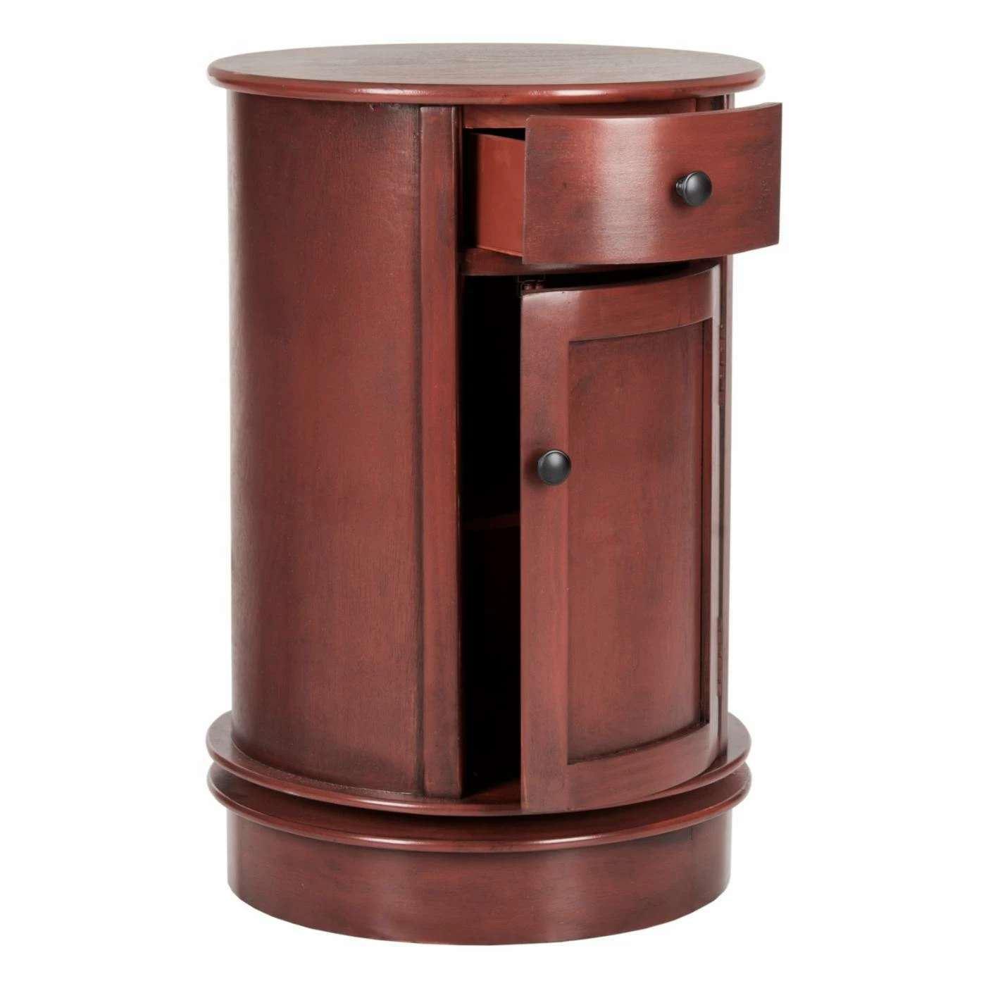 Perfect for your well-appointed home, the unexpected look of the Safavieh Tabitha Oval Cabinet adds a charming bit of storage and display. Constructed of solid pine, this durable cabinet features select finish options for traditional appeal. The drawer and door with inner shelving provide just enough storage to help you stay organized in your living room, den, or foyer. Assembly required.