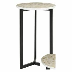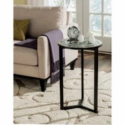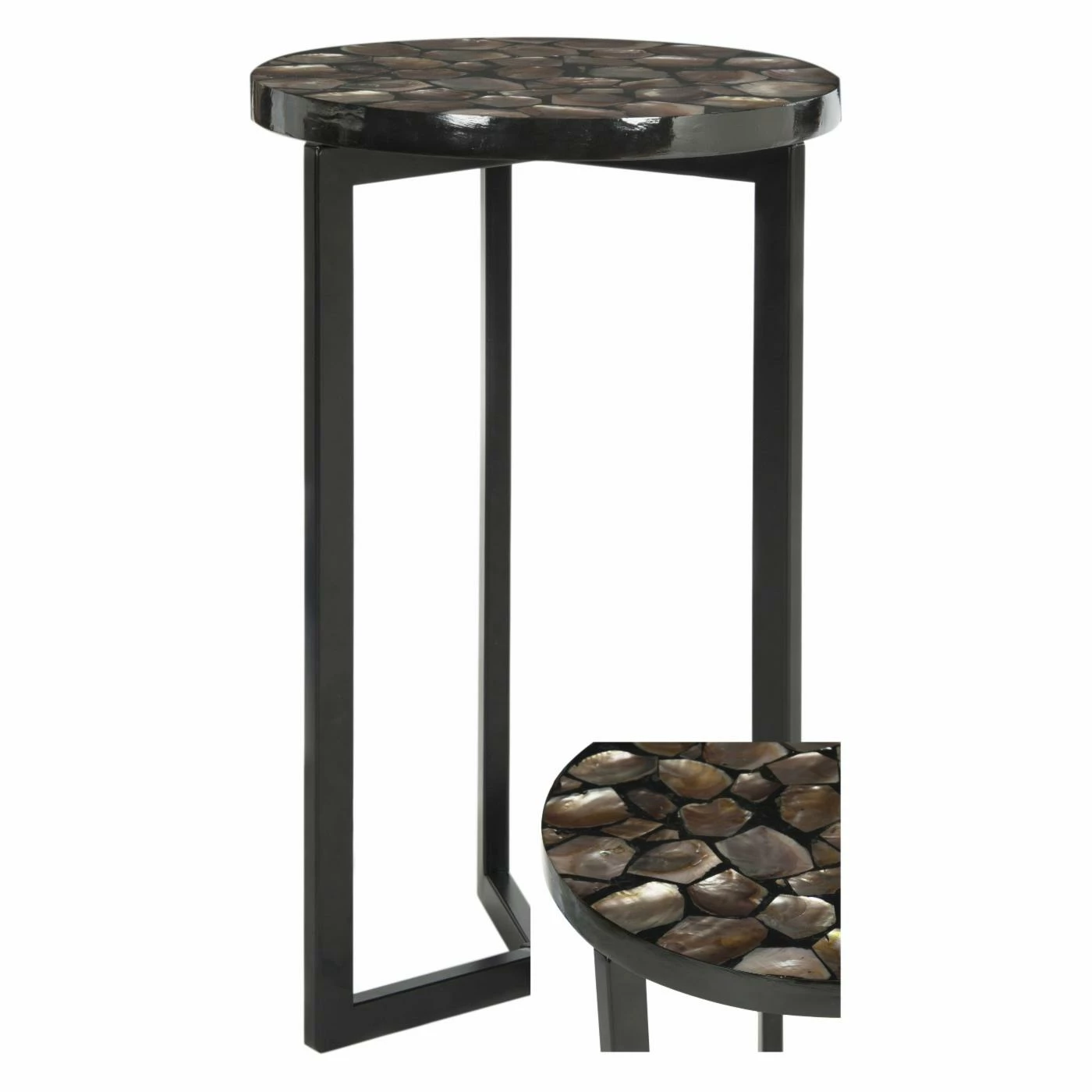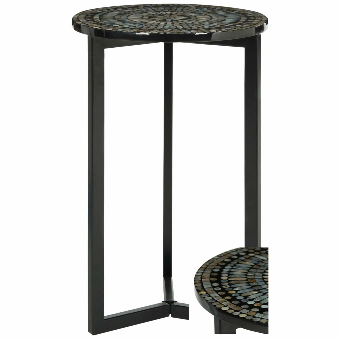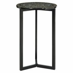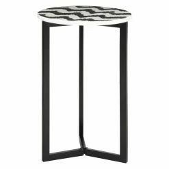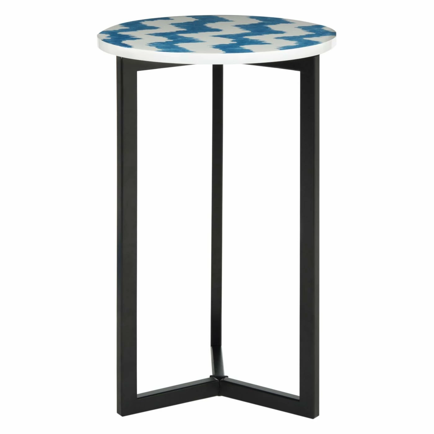 An exotic ikat pattern stands out on the top of the Safavieh Zaira End Table, bringing to mind the prints of tapestries produced in Bali. The round top rests on an open, powder-coated, metal tripod base. You can select the colorway that you prefer from the available options when you purchase the table.