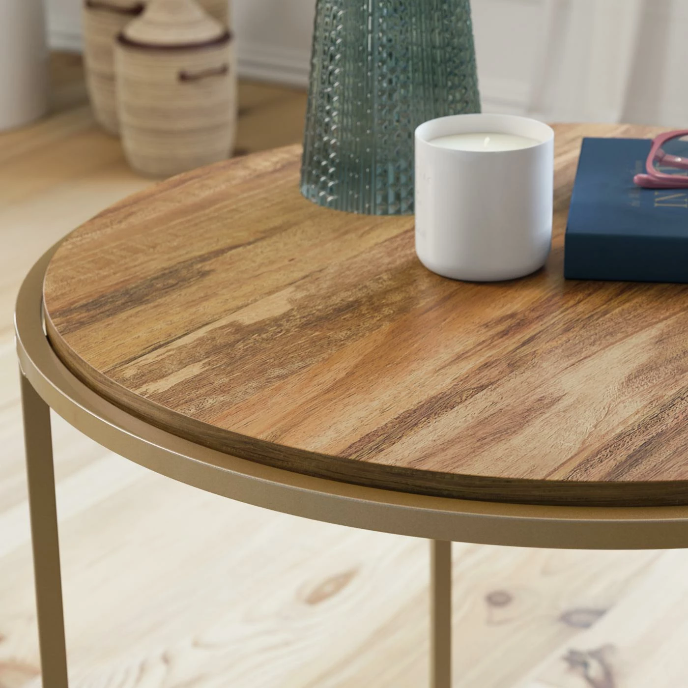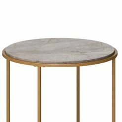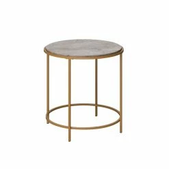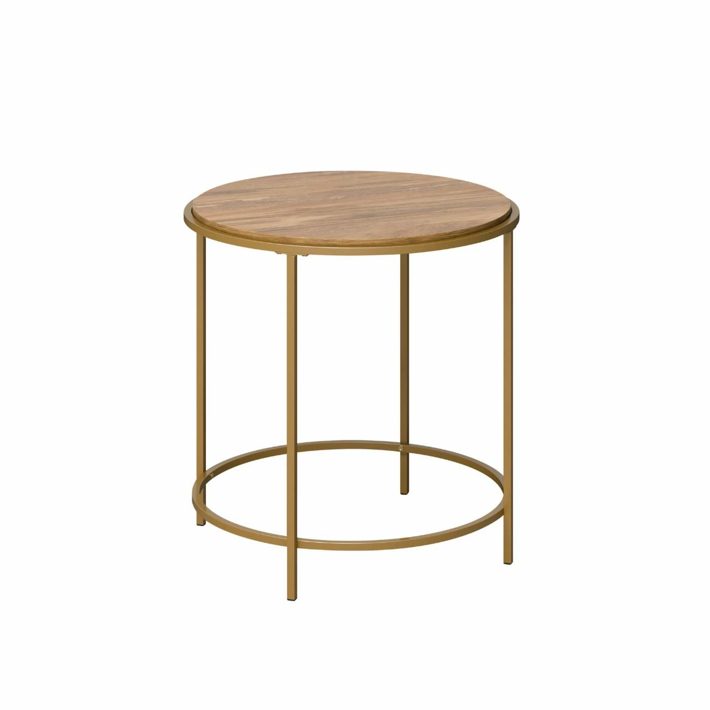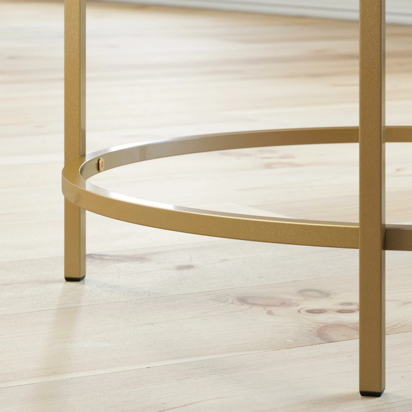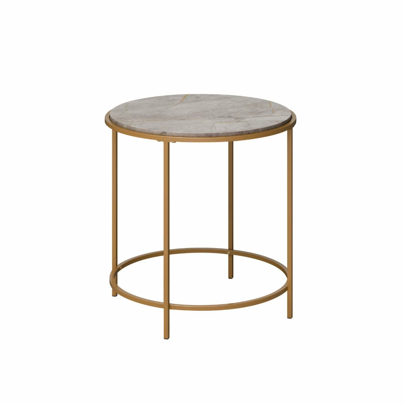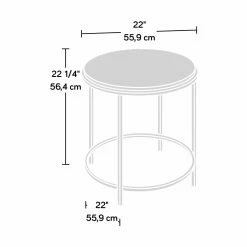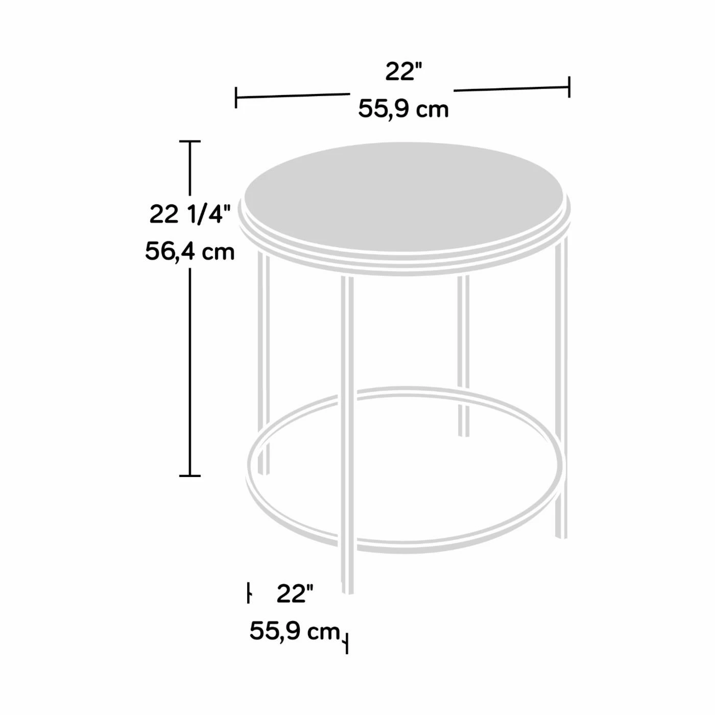 Modern style never looked so good as with the Sauder International Lux Round Side Table. This round end table features engineered wood in an optional finish and a satin gold metal frame. It is a lovely accent to your living or family room.