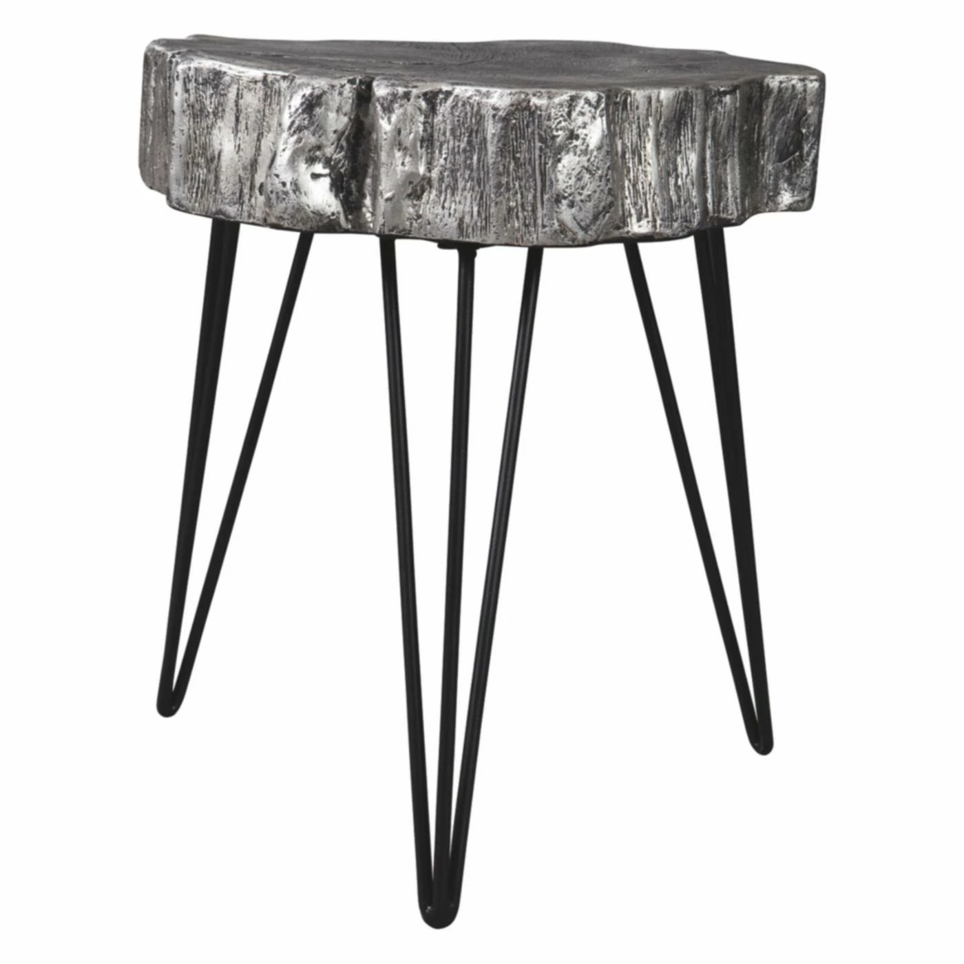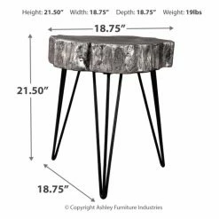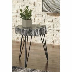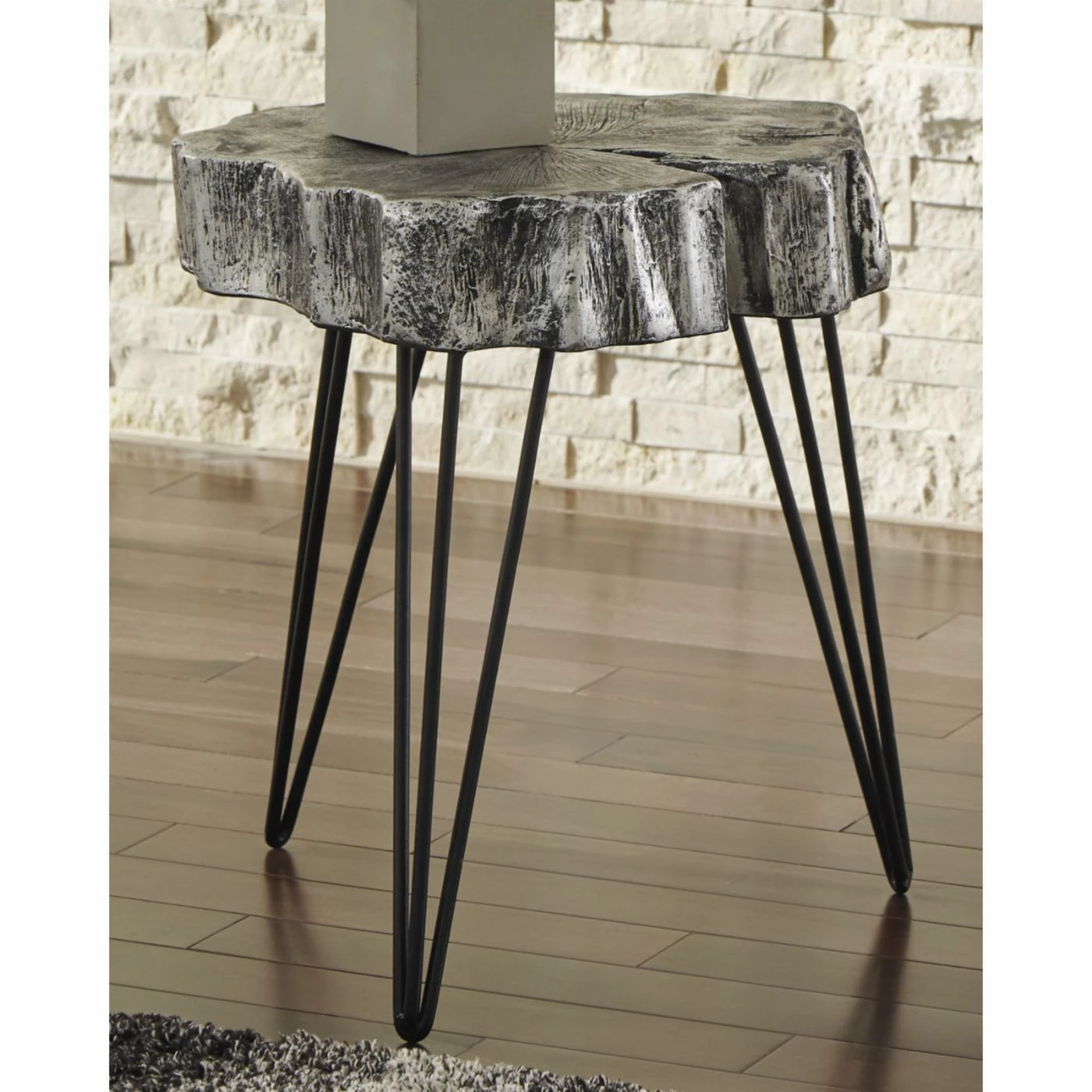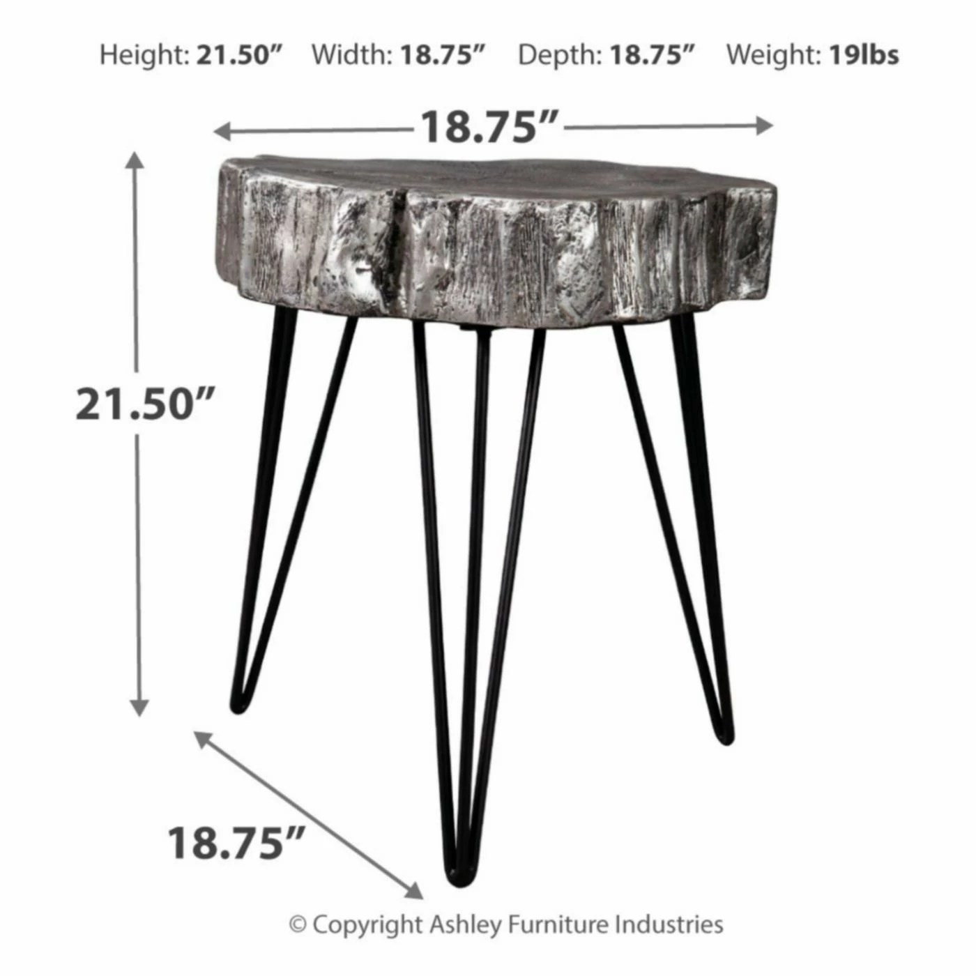 If your living room is in need of a scene-stealing accent, look no further than the Signature Design by Ashley Dellman Accent Table to get the job done. With its sculptural metal base and magnesium oxide tabletop in a wood slice design, this accent table doesn’t disappoint in the style department. Its blend of black and silver finishes is fresh and modern.