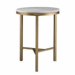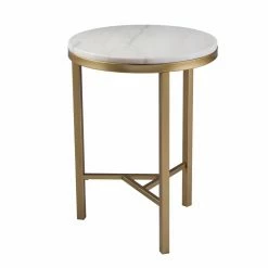 The Southern Enterprises Garza Side Table is glam style at its finest. The spacious round top has an ivory and champagne finish that complements the gold, brass frame and base like a match made in heaven. The three legs lead down to an intricate connecting base that adds interest to this side table’s design.