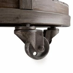 Allow the industrial style to kick your dΓ©cor up a notch with the Southern Enterprises Konya Urban End Table. This end table’s frame is made of iron. The wooden tabletop and lower storage shelf showcase rounded features. The wood sports a burnt oak brown finish, with white-limed design grooves. Wheel casters on the bottom allow this side table to be positioned easily.