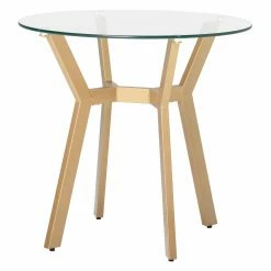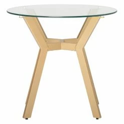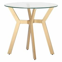 The Studio Designs Archtech Round Mid-Century/Modern End Table updates your living space. This end table is supported by a powder-coated steel base in a brushed gold finish. Each leg is equipped with a leveling glide for stability. It features a clear tempered glass tabletop.