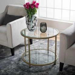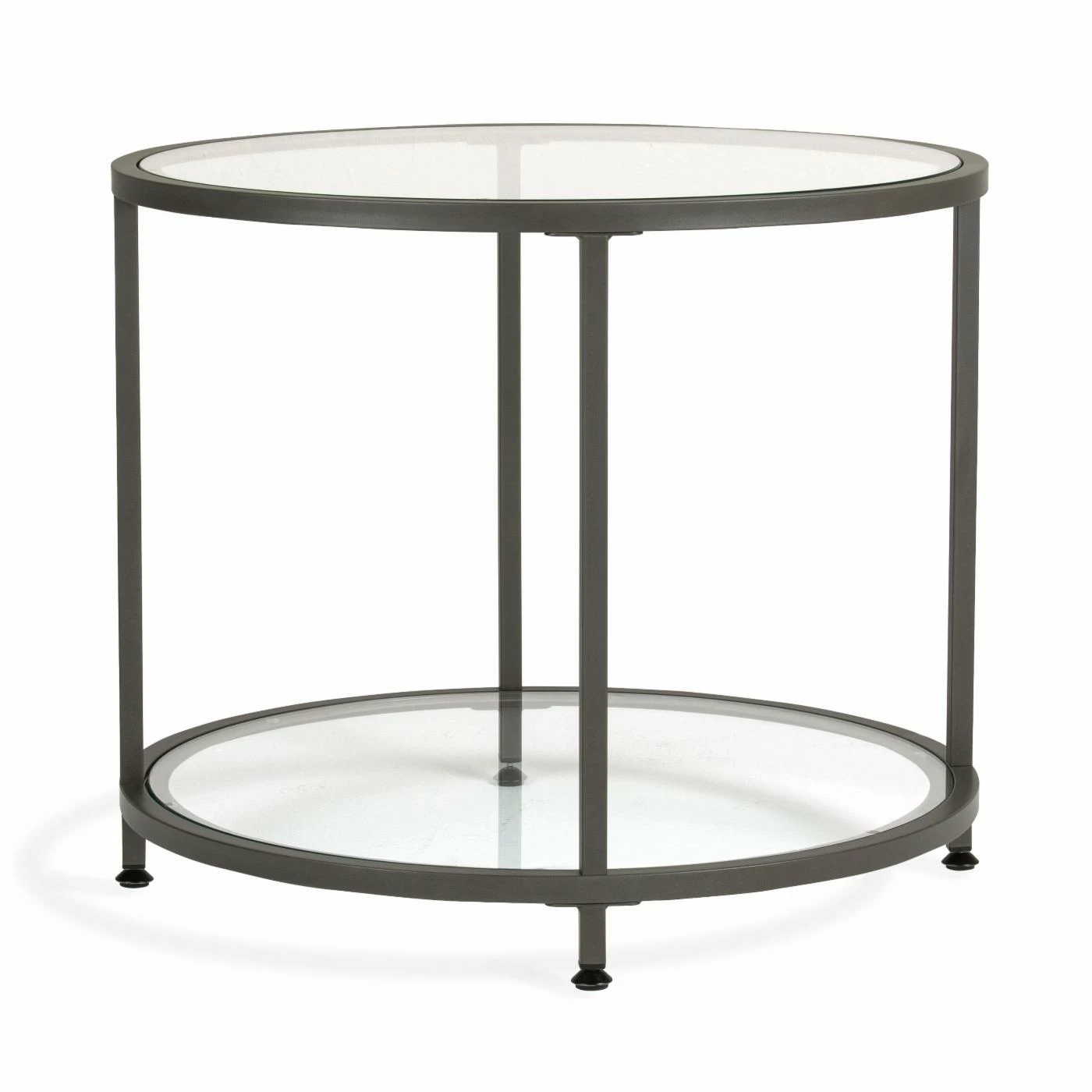Set this Studio Designs Camber Round End Table next to your bed, couch, entryway, or in a hallway of your home for a touch of modern elegance. A metal frame on this end table offers durable support to the glass tabletop and lower shelf. It serves as a convenient way to store books, magazines, decorative items, and more. This sturdily crafted end table showcases a sleek round shape that works well in any space.
