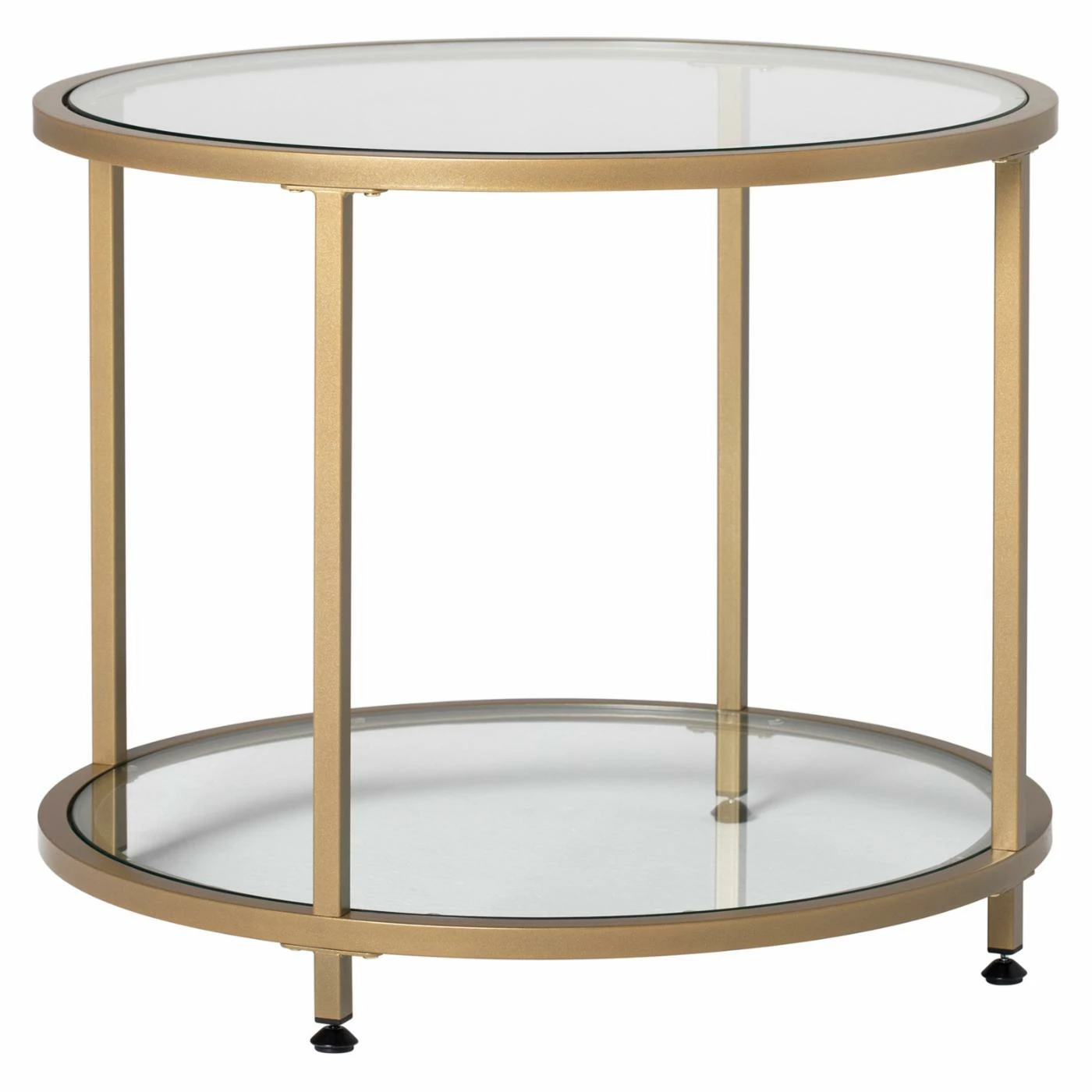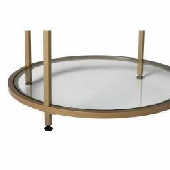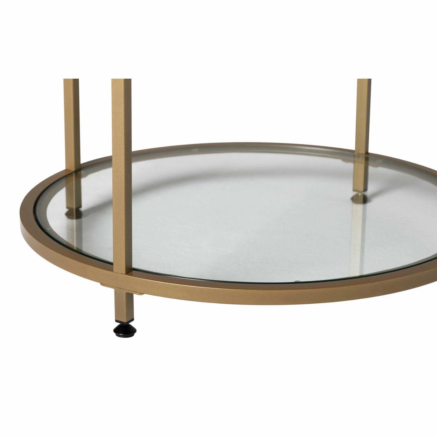 - Round top, shelf of clear tempered glass