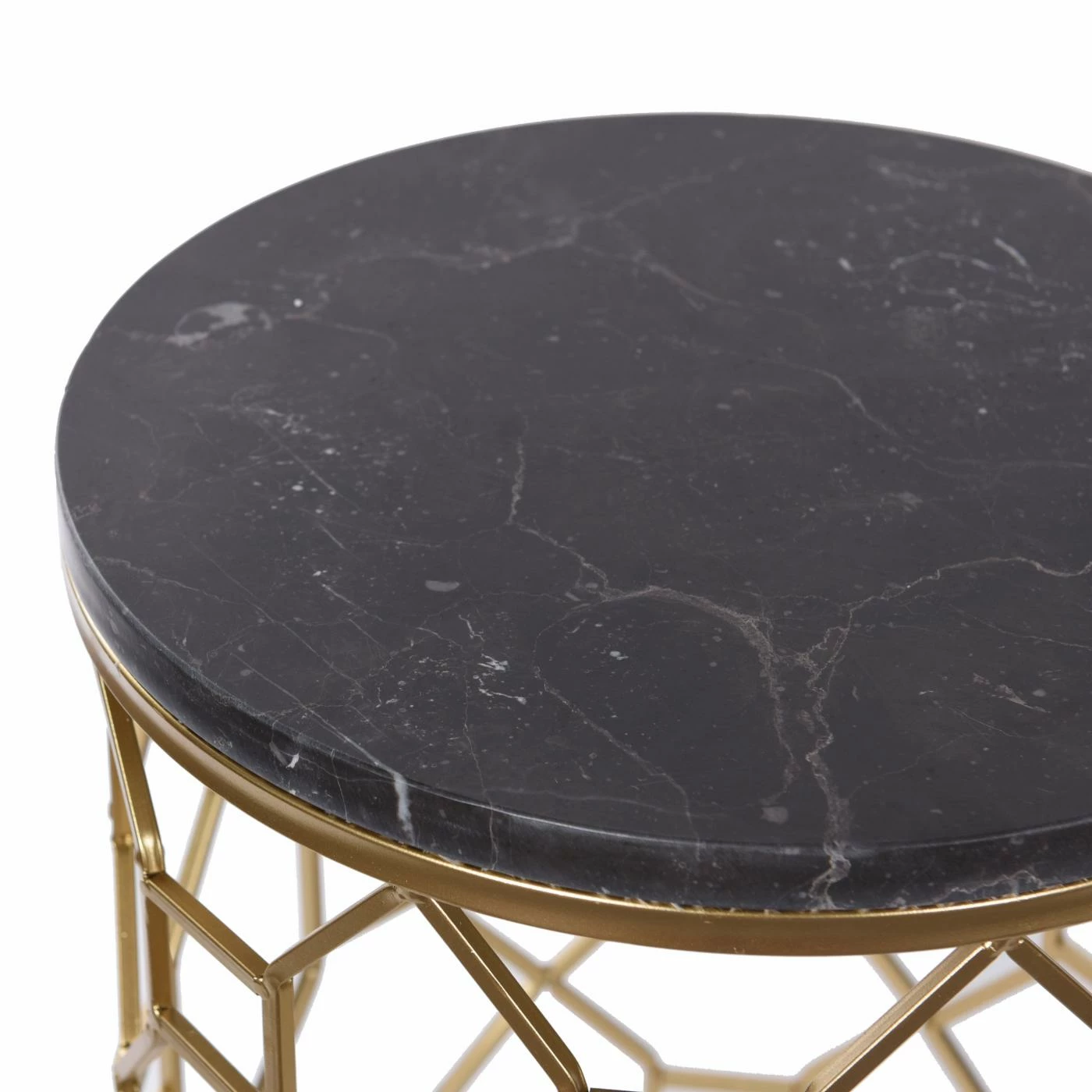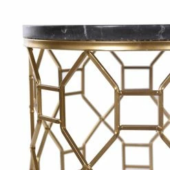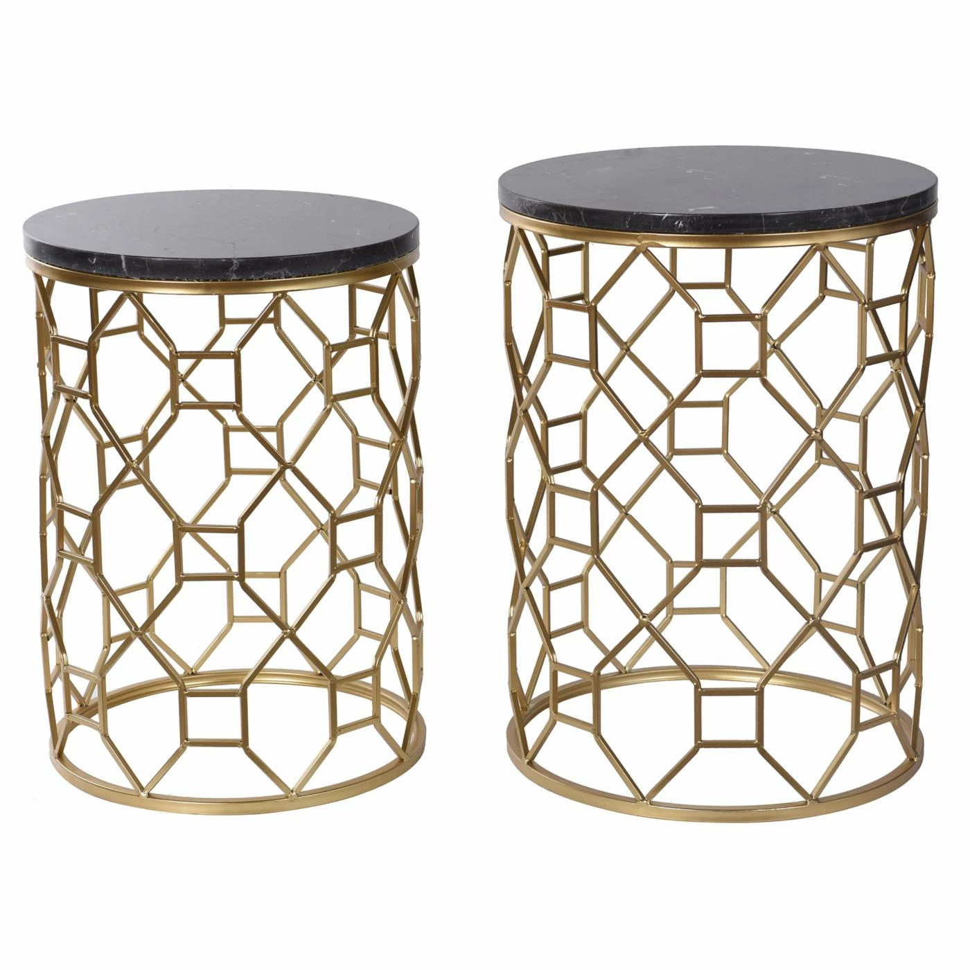 Glam up your living space with the StyleCraft Round Marble Top End Tables – Set of 2. This set includes two sizes of end tables, allowing you the designer versatility of bunching them for use as a cocktail table or using separately. Each features a polished, light brown marble top and gilded cast iron open framework with geometric shapes.