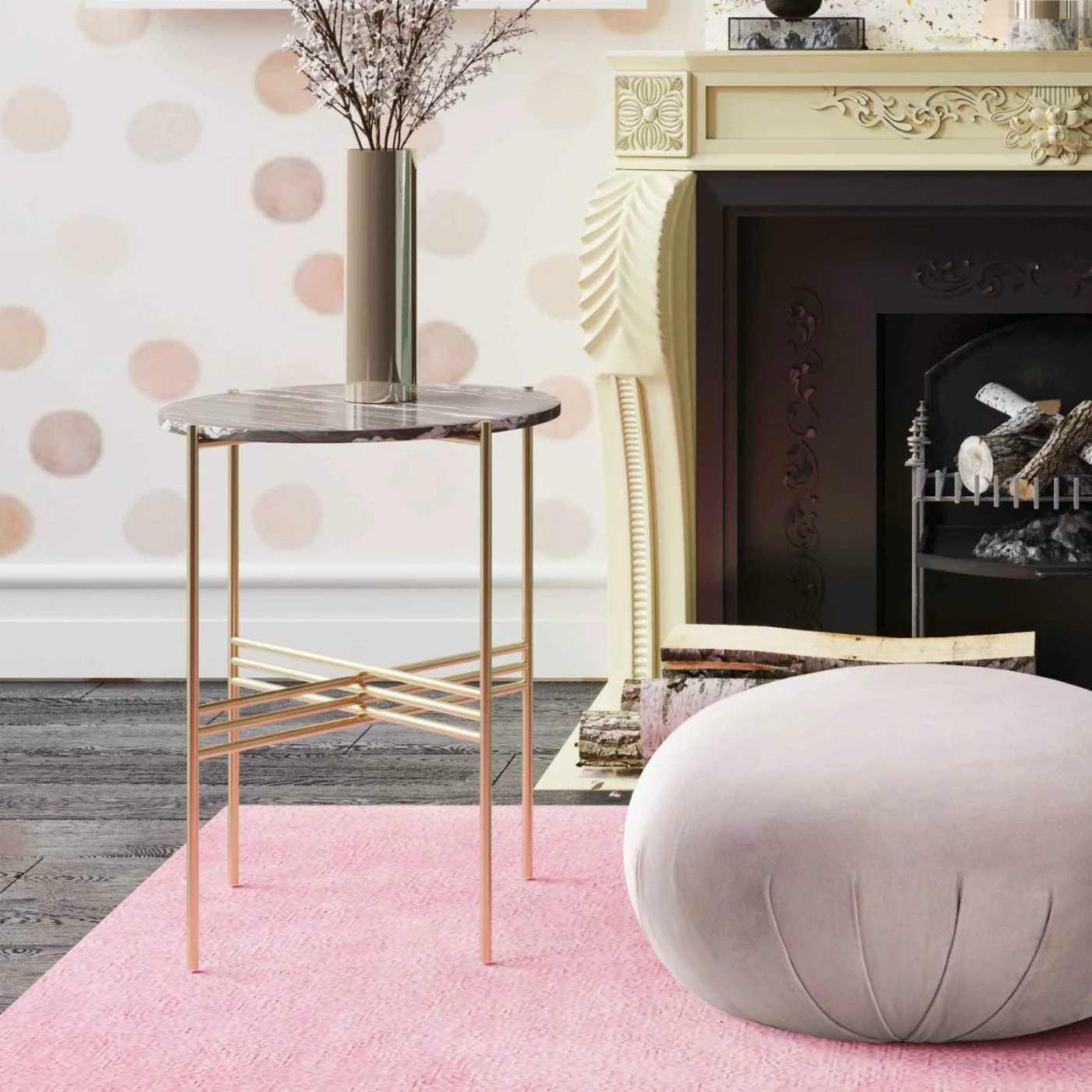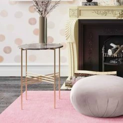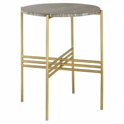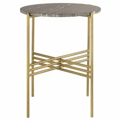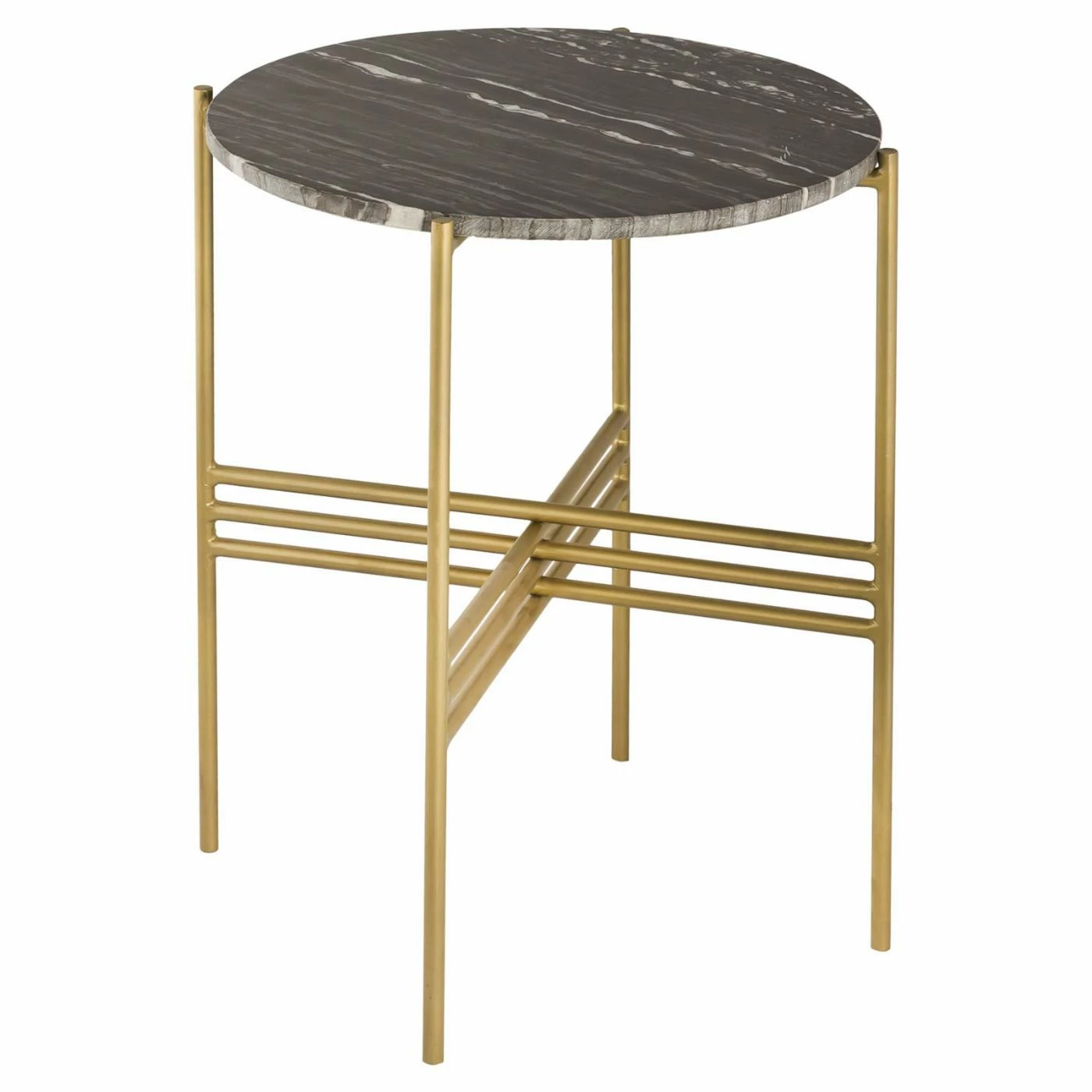 Lend some mid-century dynamism to your new refined living room with the TOV Furniture Cress Side Table. This round table is supported by a tubed iron frame, finished in deep gold. The legs are bolstered by triple X-shaped stretchers. A round piece of genuine black marble serves as the tabletop, neatly complementing the base.