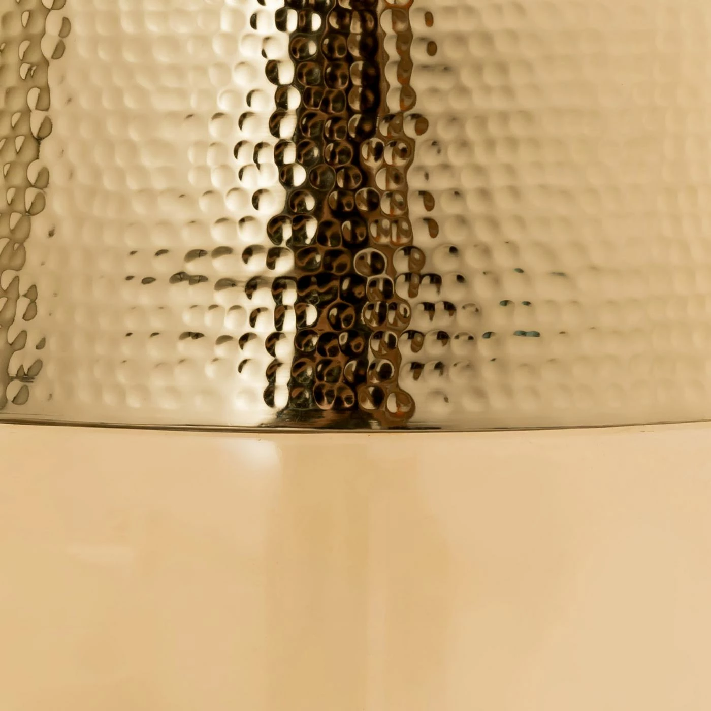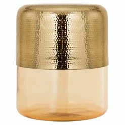 The TOV Furniture Kolla Drum Side Table‘s intriguing looks are created by hand hammering the aluminum top to create its distinctive dimpled texture. The translucent glass base comes in your choice of select color options. Together, they bring glam looks to any living room or bedroom.