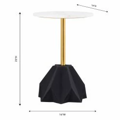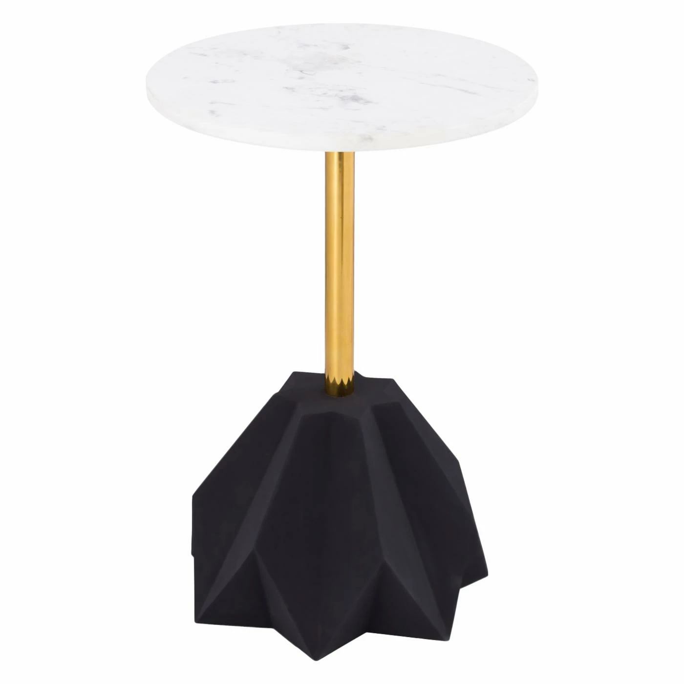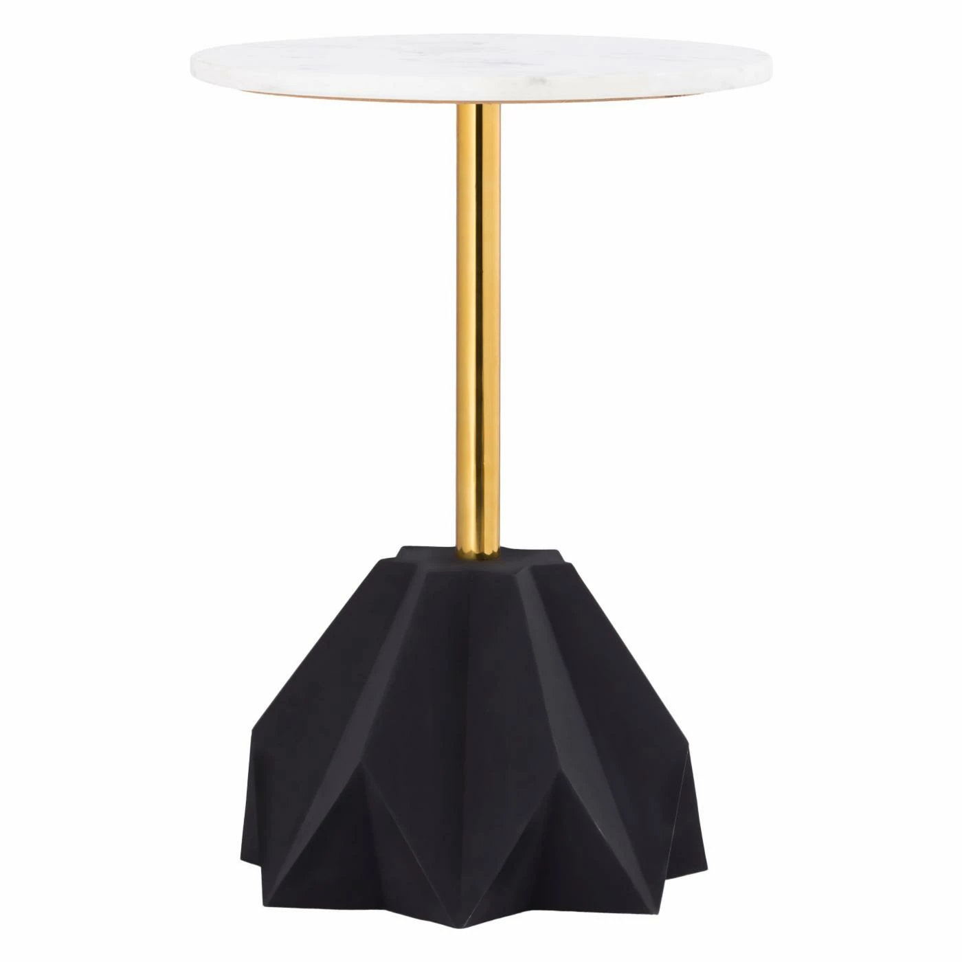 The TOV Furniture Origami Side Table is a look straight from a modern art gallery to your living room. The origami-inspired base is made of engineered wood with a matte black finish. A gold-finished metal piece leads up to the round white marble top and adds a little glitz to the table.