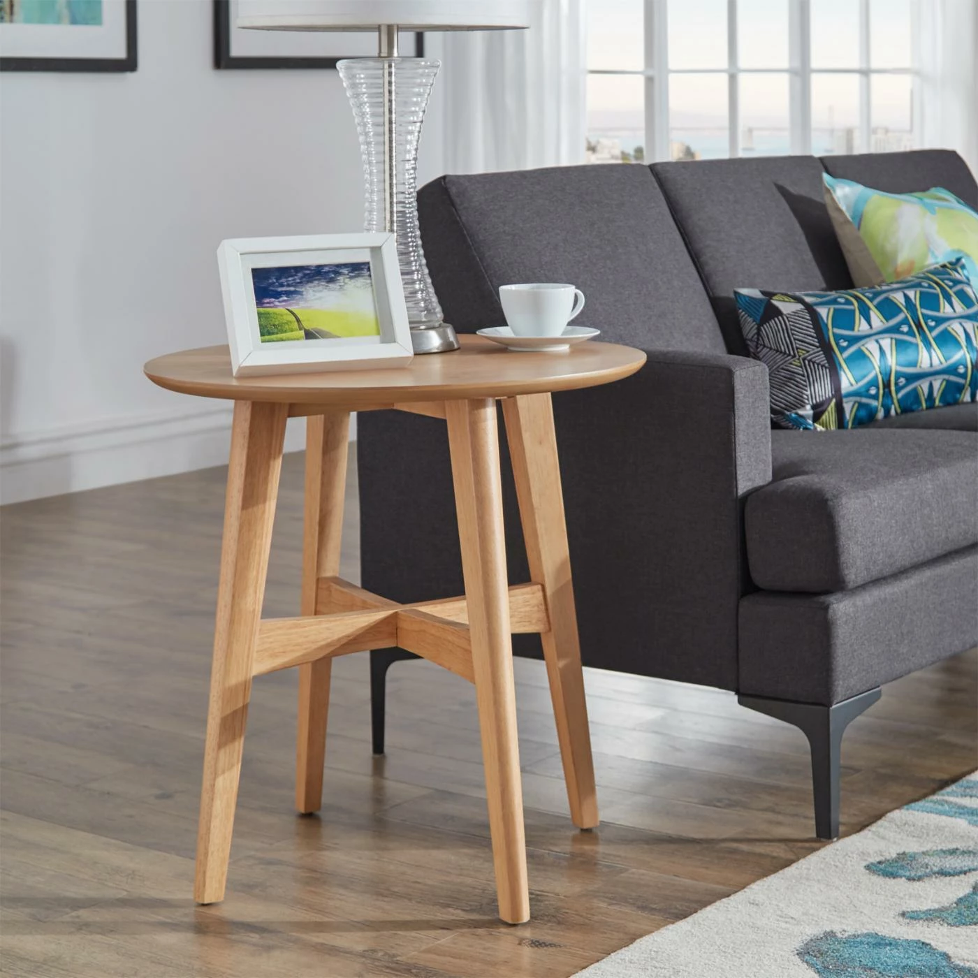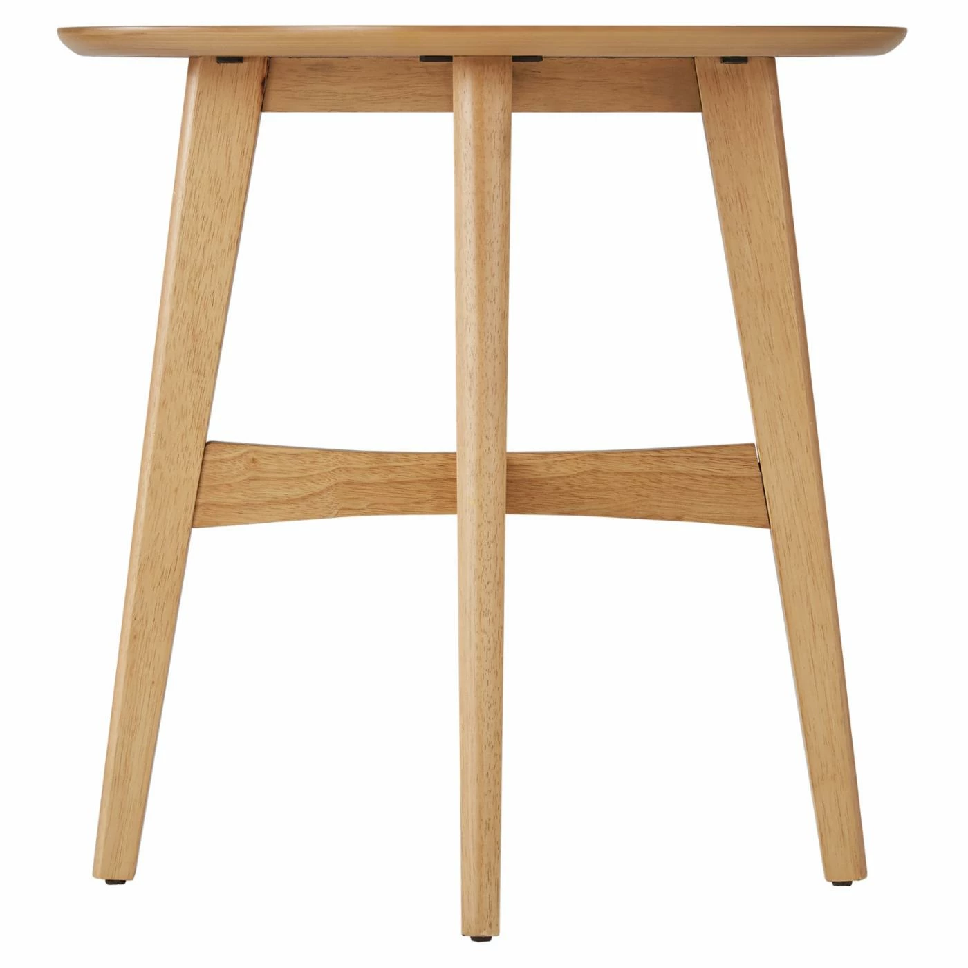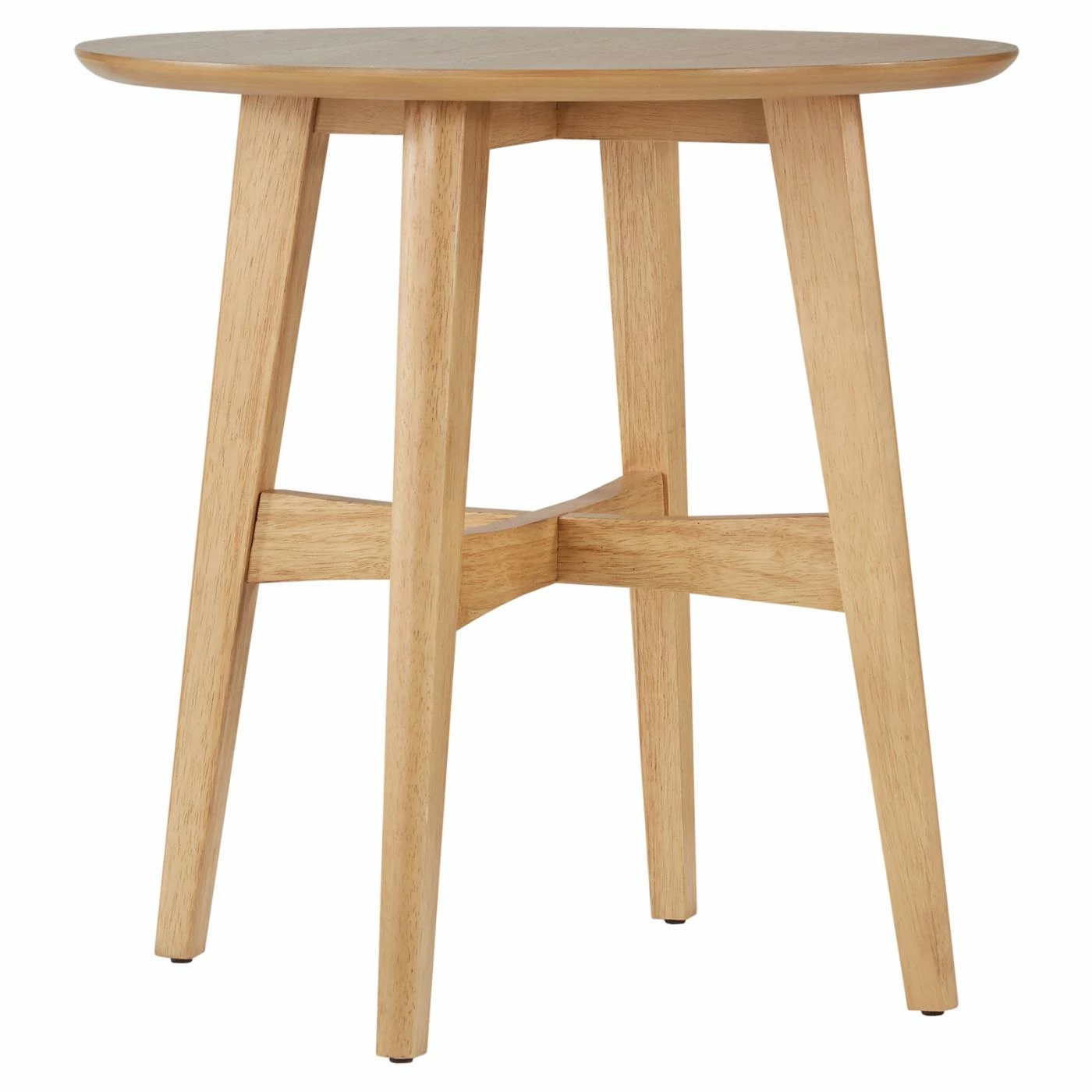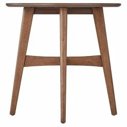 Give your room a modern pep-talk with the Weston Home Carole Round Wood Modern End Table. This round end table has a round spillover top with four angled, tapered legs. The legs are united by this cross stretchers. Solid rubberwood and engineered wood constructs the frame, topped by fine veneers. Choose from the available finish options.