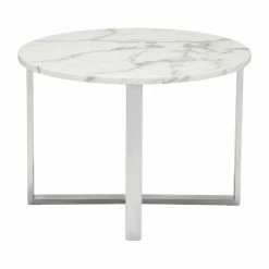 You don’t have to scour the earth to find the perfect piece, it’s right here in the Zuo Modern Contemporary Globe End Table. A geometric metal base features a unique cross-leg design. Choose from available metal finishes to customize the look. A round white faux marble top completes the luxe look.