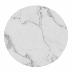 - Round white faux marble top