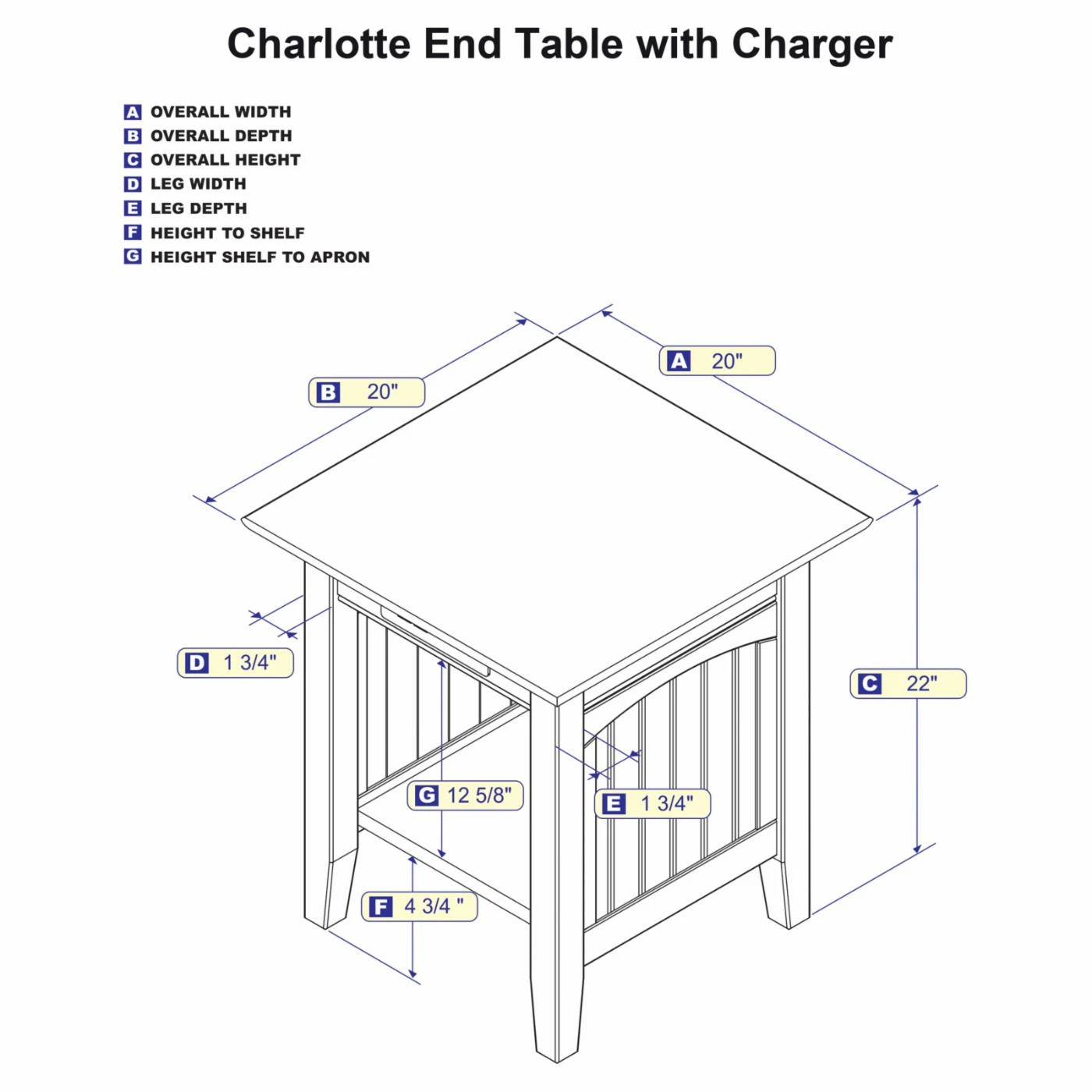- Dimensions: 20W x 20D x 22H in.