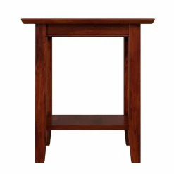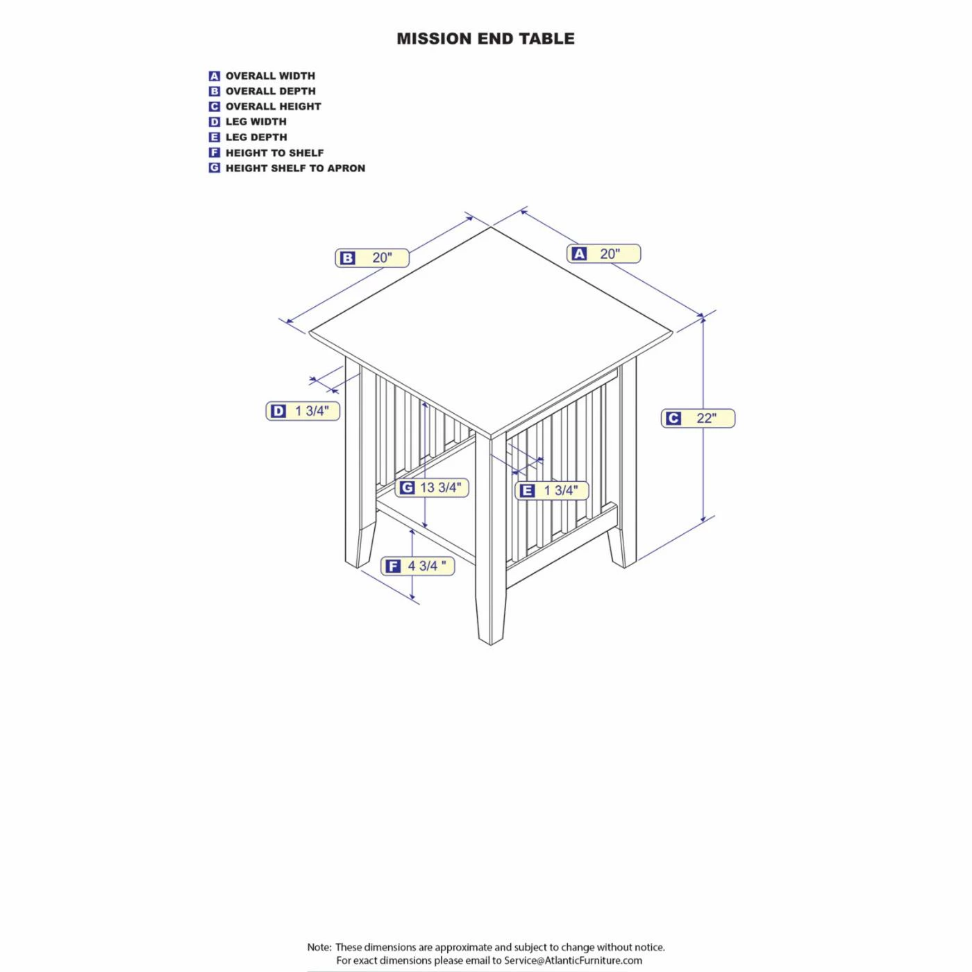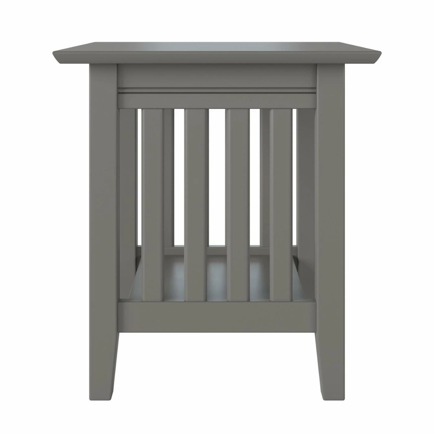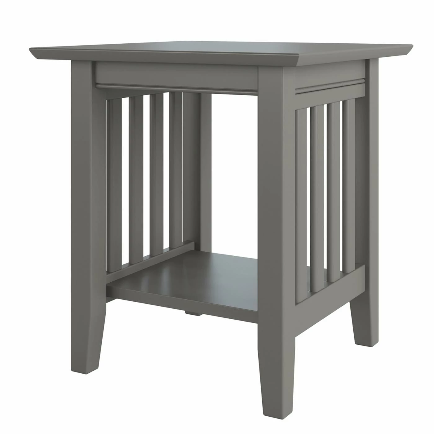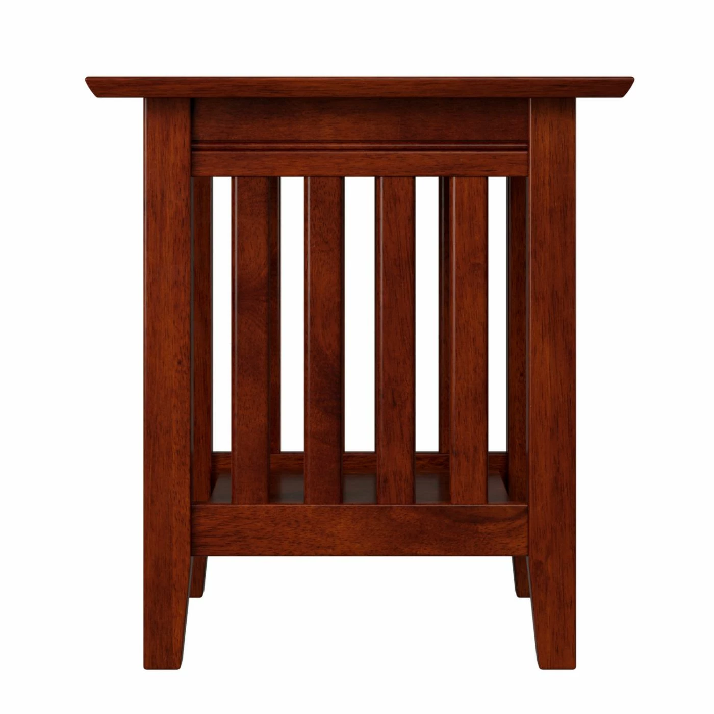 This AFI Furnishings Mission End Table boasts classic Craftsman lines. It boasts traditional slatted sides and sturdy, tapered legs for that popular mission design look. An open compartment offers storage or display space. This end table is built of solid, eco-friendly hardwoods and is available in select finish options.