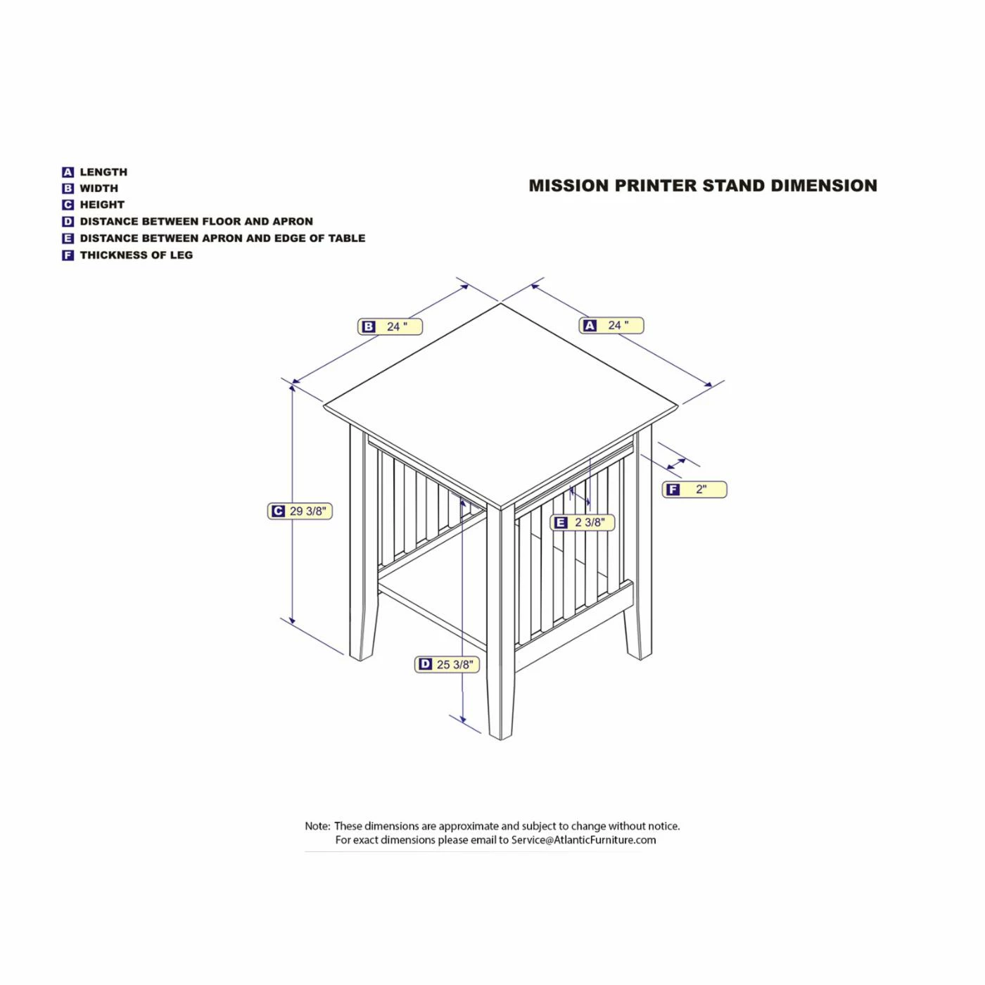 The look of early 20th century style gets a 21st century upgrade with the AFI Furnishings Mission Printer Stand / End Table with Charging Station. This table has the right angles and long, straight lines that make Mission style so appealing. The body is crafted from solid hardwood with mortise-and-tenon joinery that gives it strength enough for years of regular use.