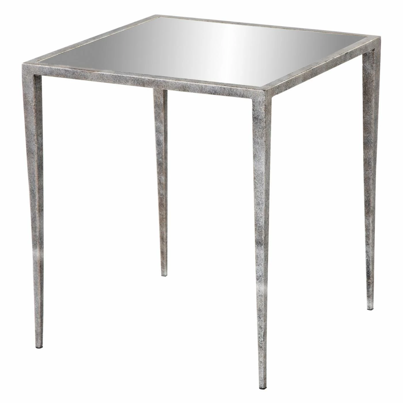 Dial-in a touch of glamour with the Burnham Home Designs Regina Side Table. Featuring simple, modern lines, this side table evokes a chic-contemporary aesthetic that will add designer style to any room. This side table is constructed from durable iron and features a chic silver speckled finish. The mirrored glass top brilliantly refracts light while providing a sleek space to set your drink. Assembly is required for this side table.