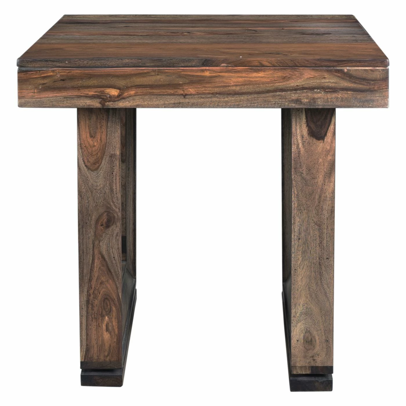 The Coast to Coast Imports Brownstone End Table is a versatile end table that nestles nicely beside a chair, sofa, or bed. Its sturdy Sheesham wood construction is durable, and the brownstone nut brown finish adds a rich touch to this piece. Clean lines add a modern touch to this piece.