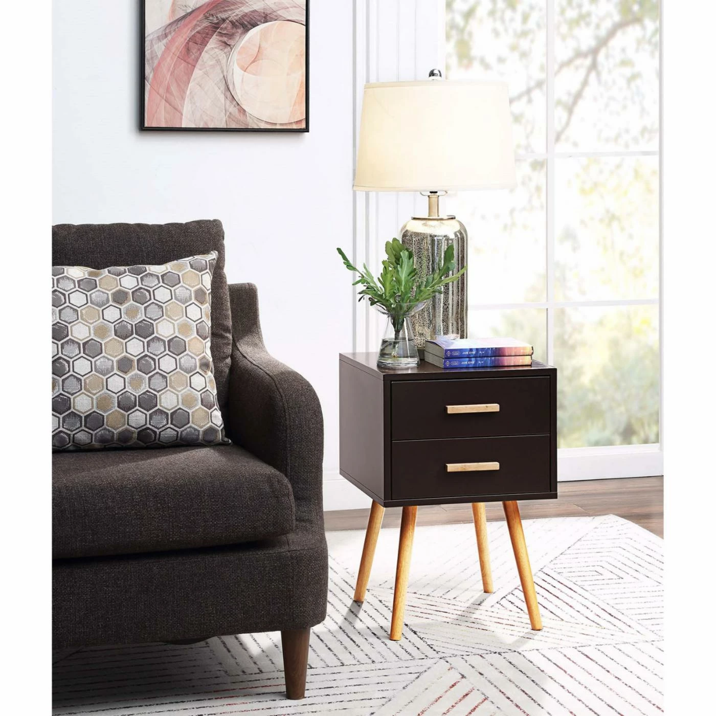 Dress up your modern home with the Convenience Concepts Oslo 2 Drawer End Table. This fun little table features two drawers for concealed storage. A glossy finish in your choice of available color adds durability and sophistication to this piece.