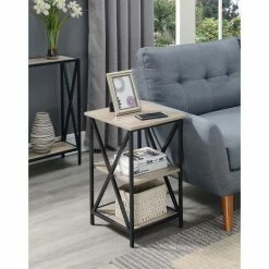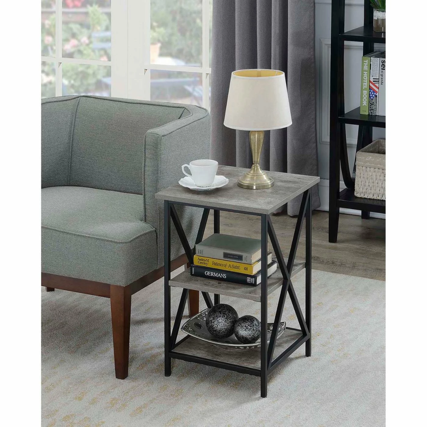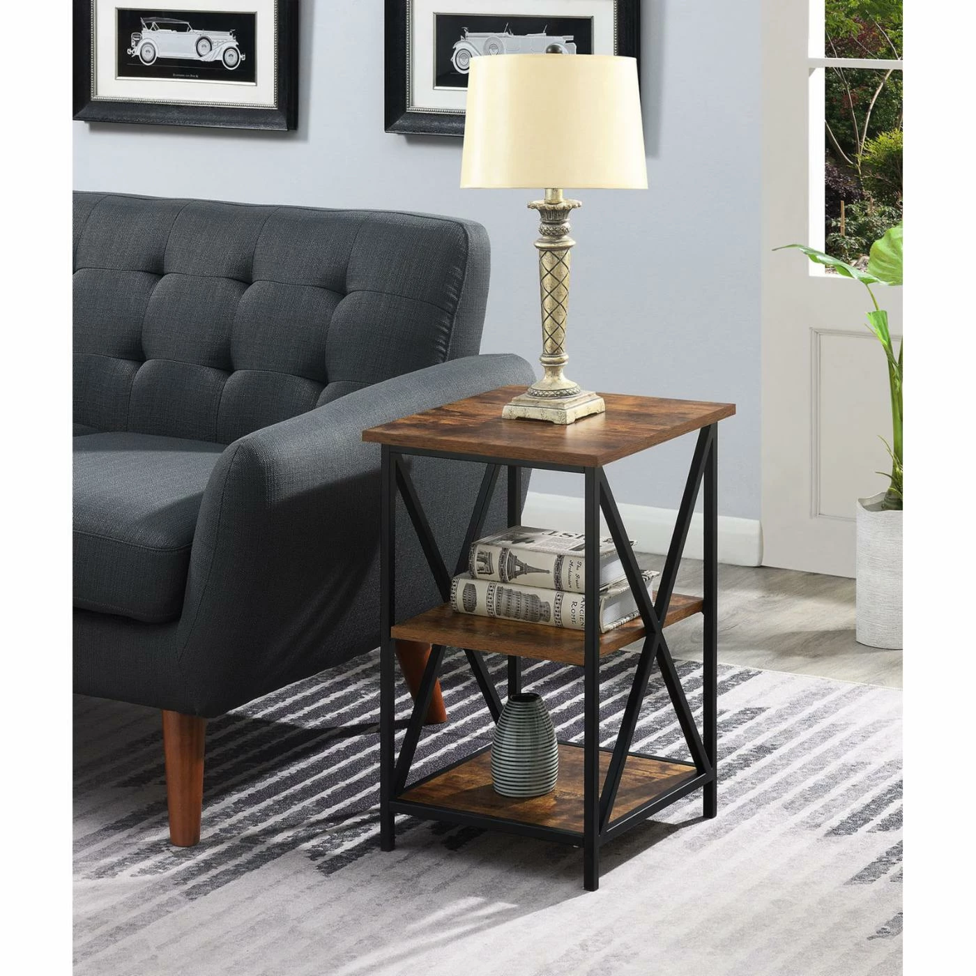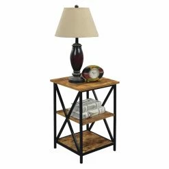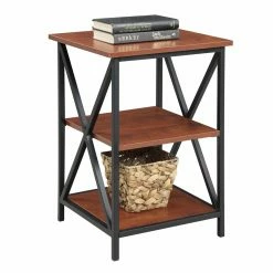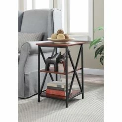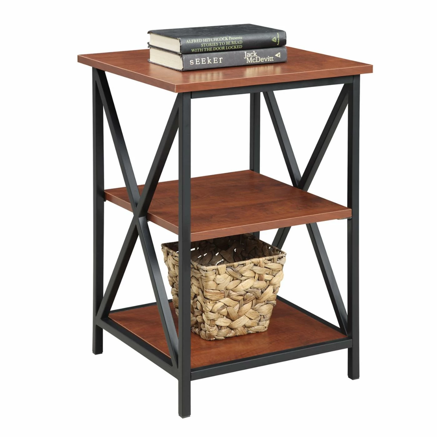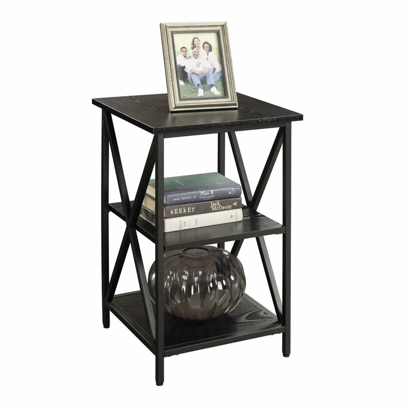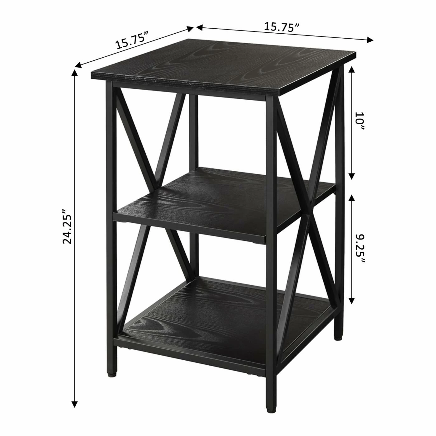 Rich wood tones and a matte black finish make the Convenience Concepts Tucson Square End Table an elegant addition to your traditional home. Three separate shelves offer maximum display area for your favorite home accessories.