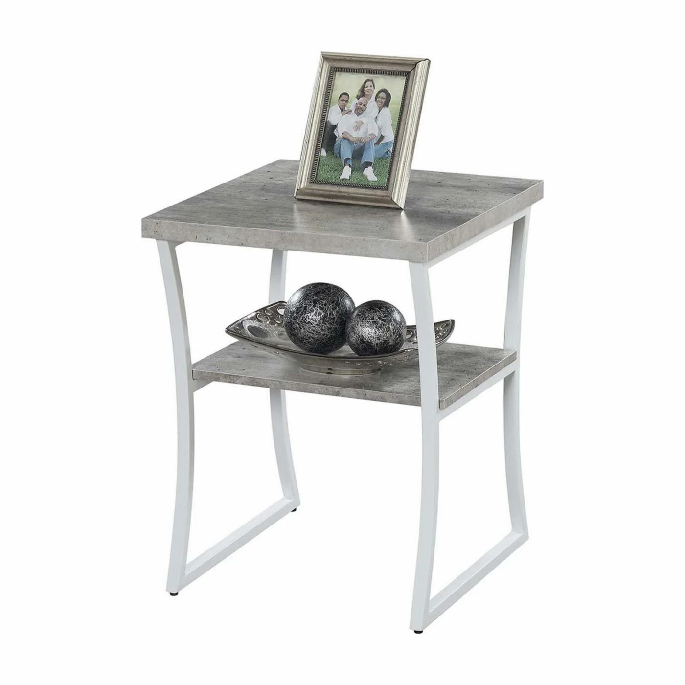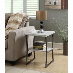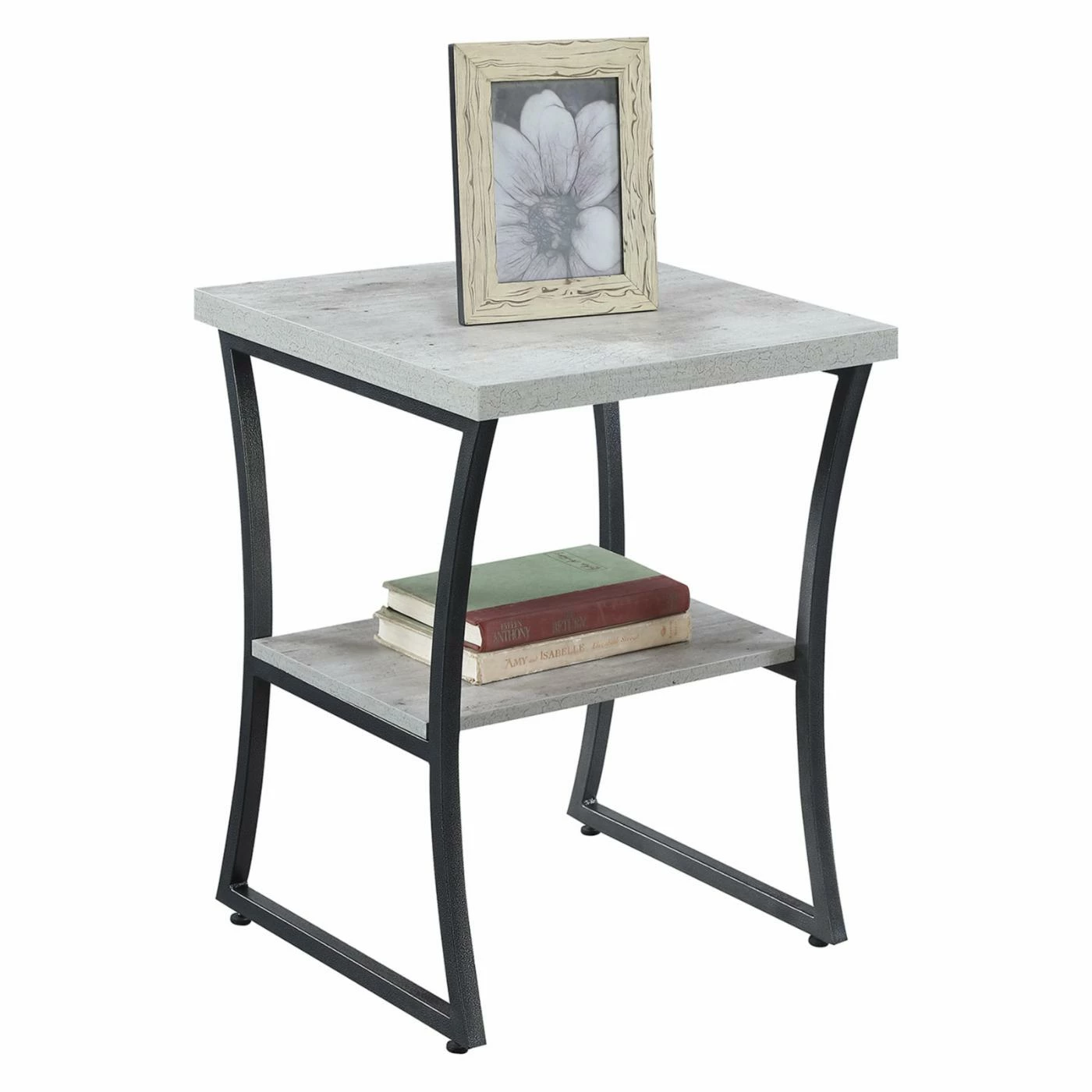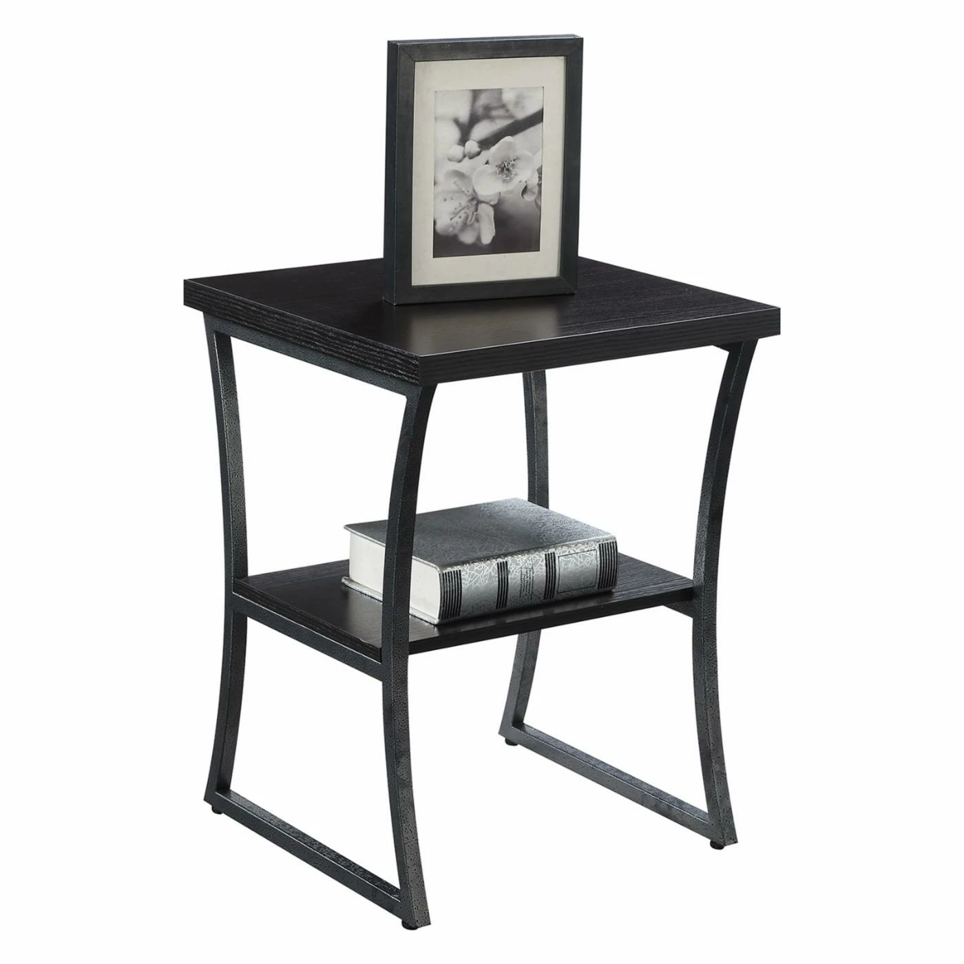 The Convenience Concepts X-Calibur End Table has a sleek, modern look to bring your living room or bedroom an urban-industrial vibe. This durable end table has a thick powder-coated frame in a dramatic black color that gives it an edgy look. The top and bottom shelf are available in your choice of finish so you get the design and color scheme you most desire. Use the lower section to display framed photos or collectibles, stack books, and more.