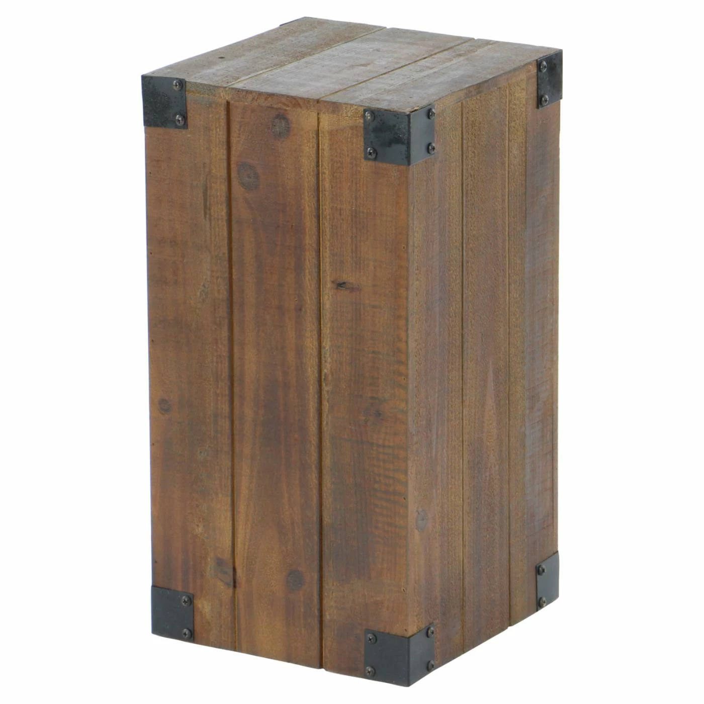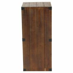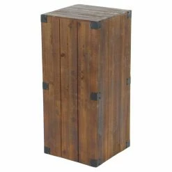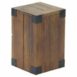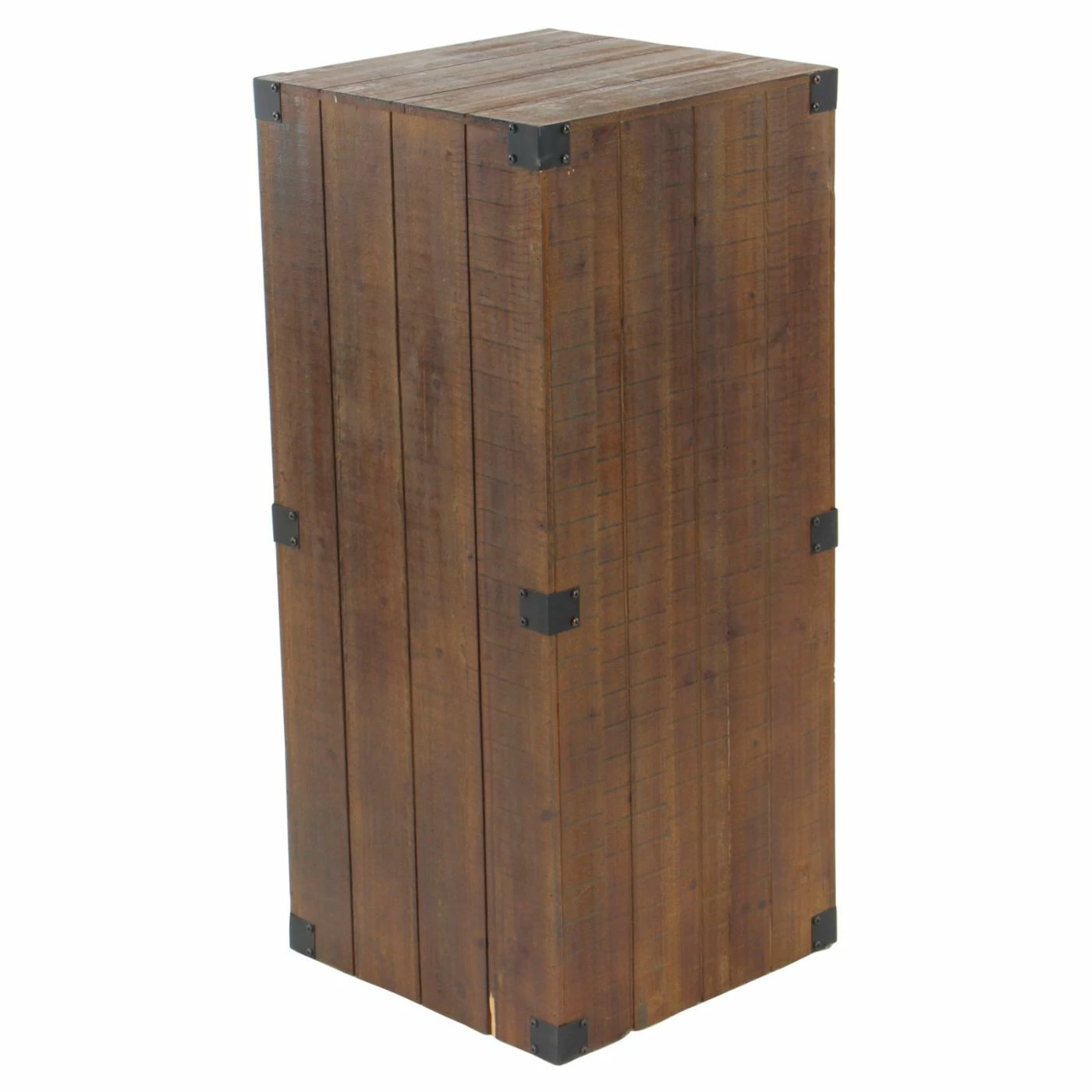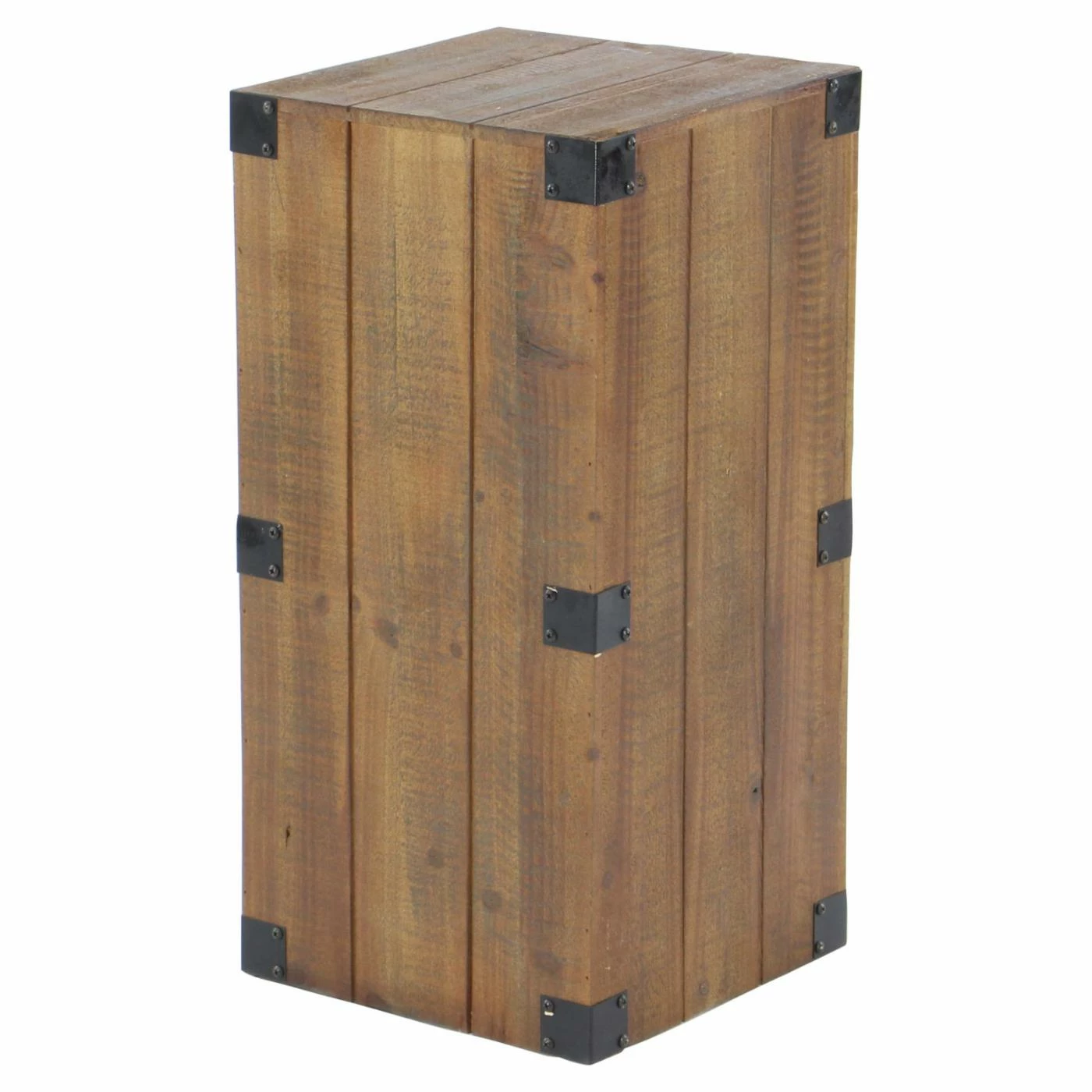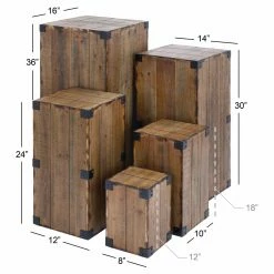 Cozy farmhouse aesthetic brings warmth and simplicity to the DecMode 5 Piece Farmhouse Plank Pillar Pedestal End Table Set. Each piece is crafted from natural brown fir wood with metallic black iron corner accents. No assembly is required for any of these five pedestal end tables.