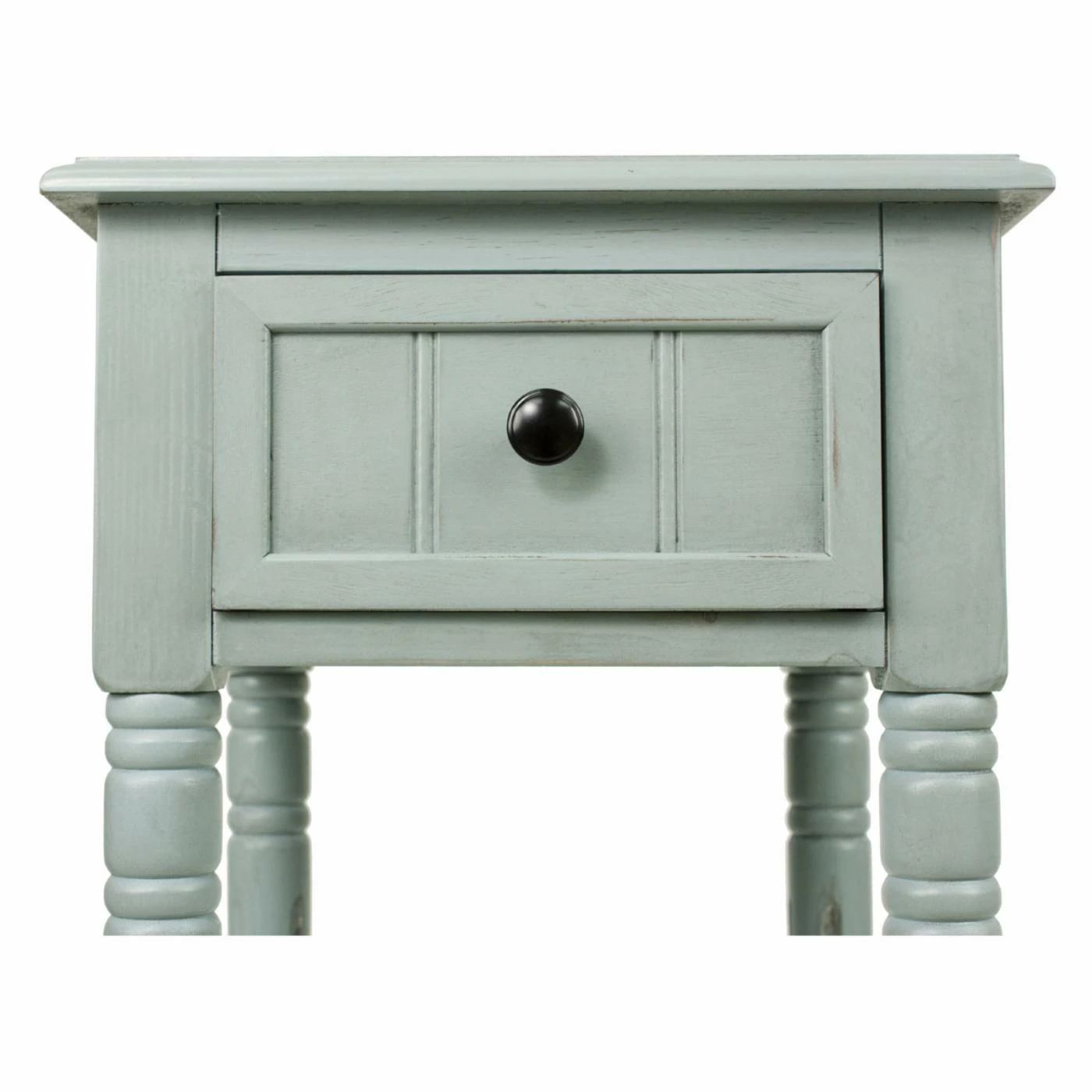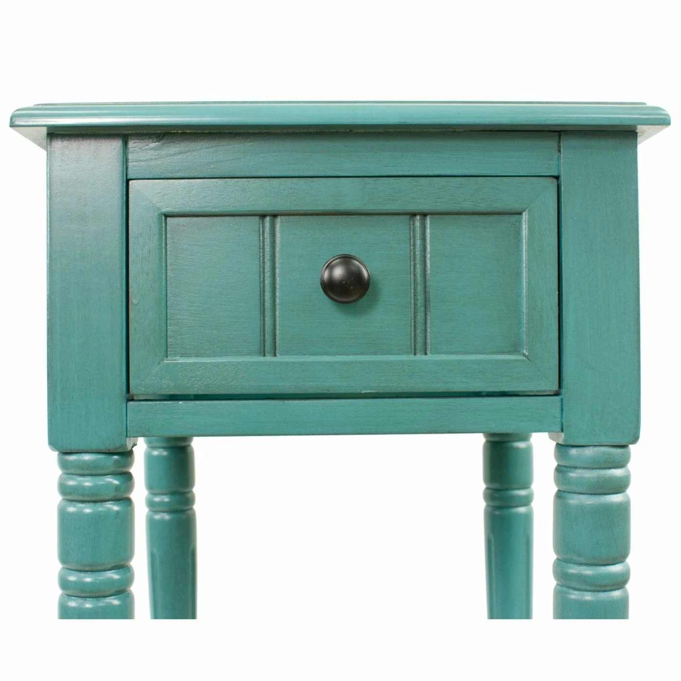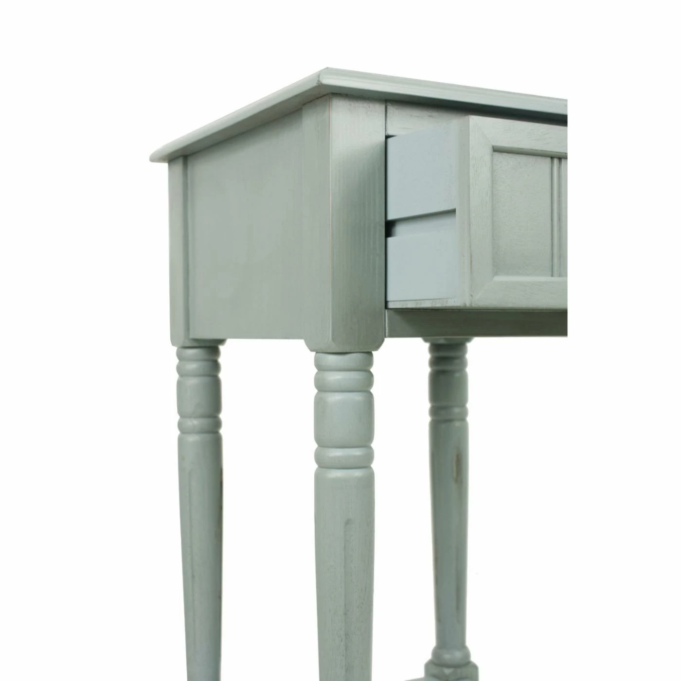 - Turned legs and carved drawer front