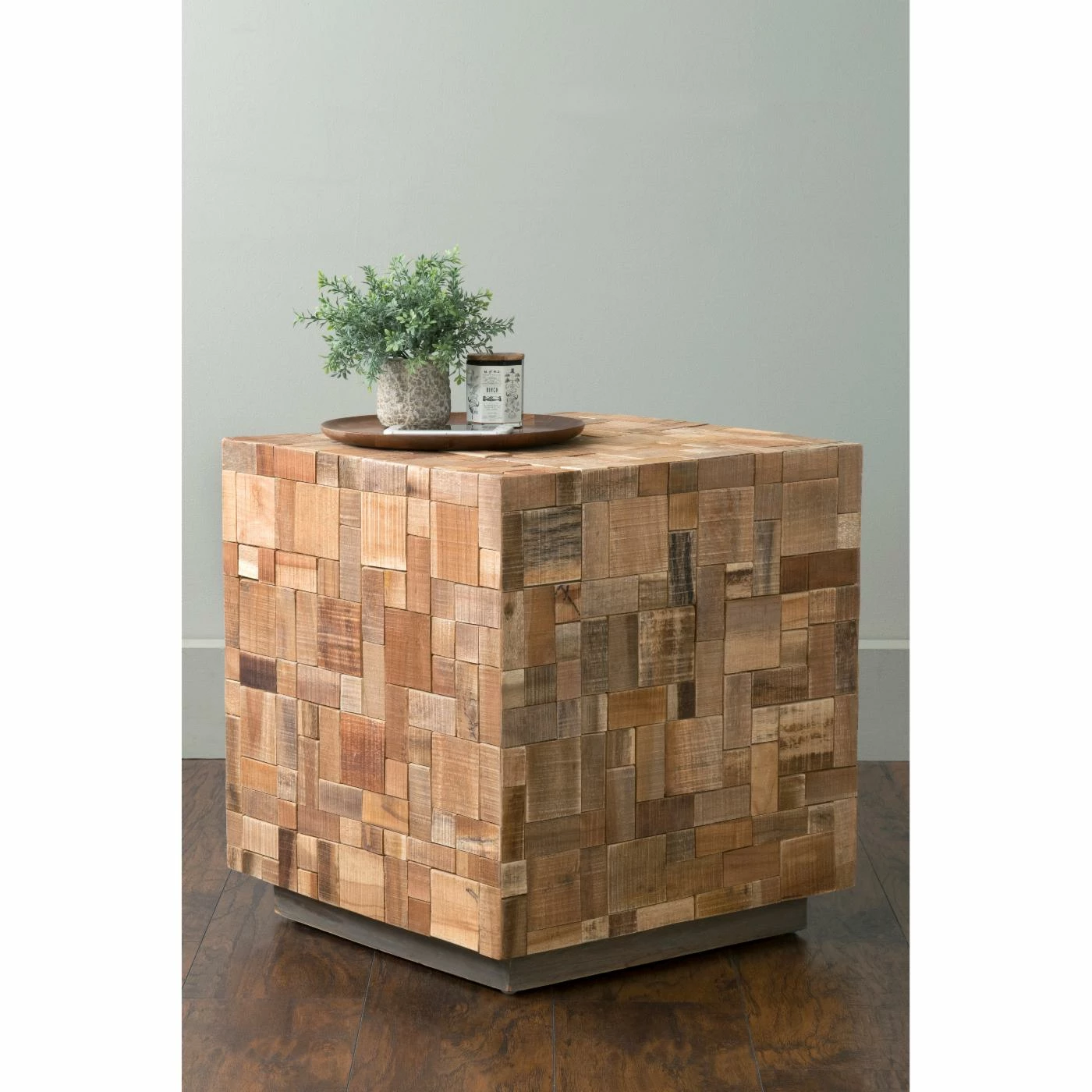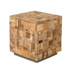 The East At Main Edith Mosaic Wood Square Accent Table brings a rustic element to your living room or bedroom decor. This sleek block table is crafted of teakwood. It features a patchwork-like motif due to the varying wood colors. Set it next to a bed, sofa, or armchair.