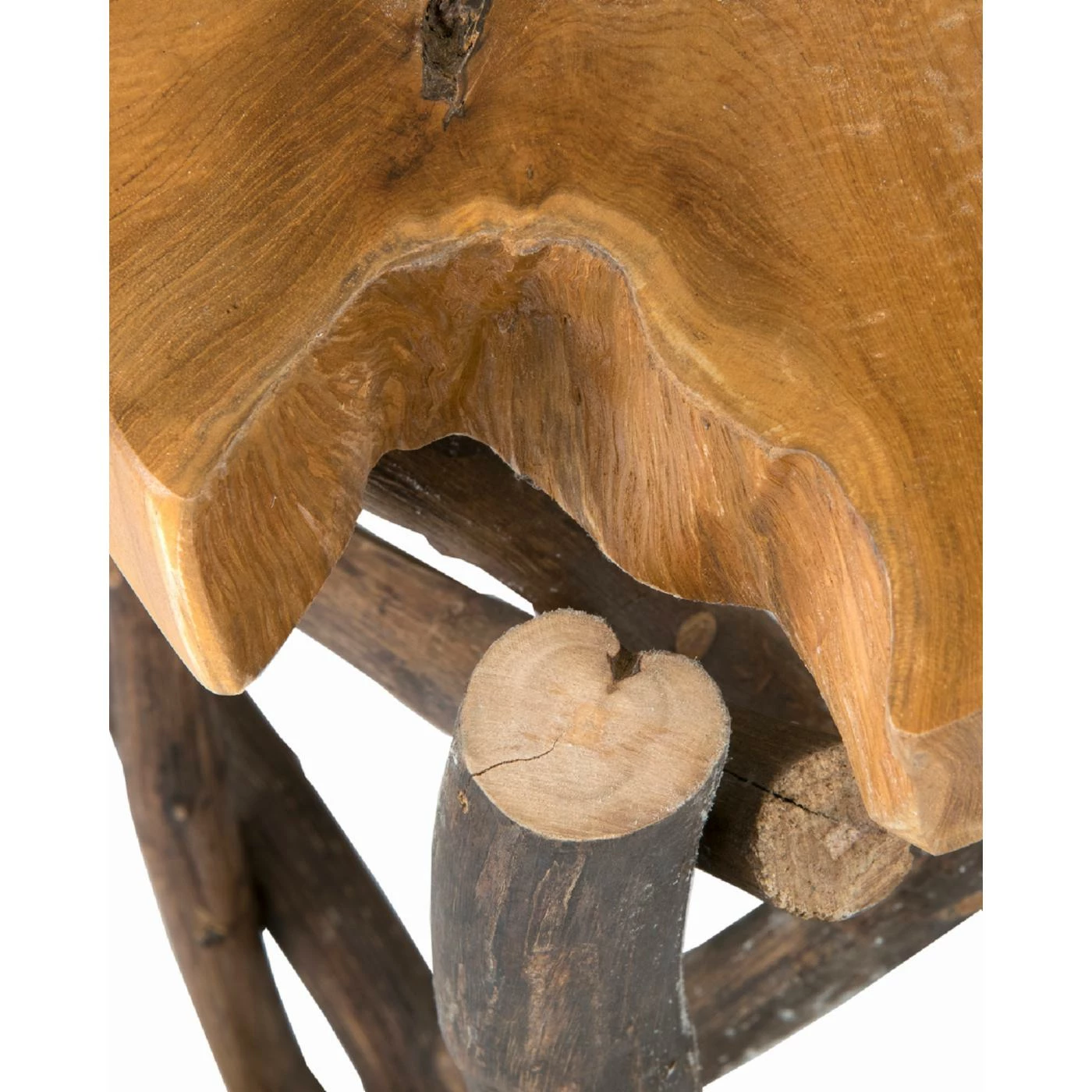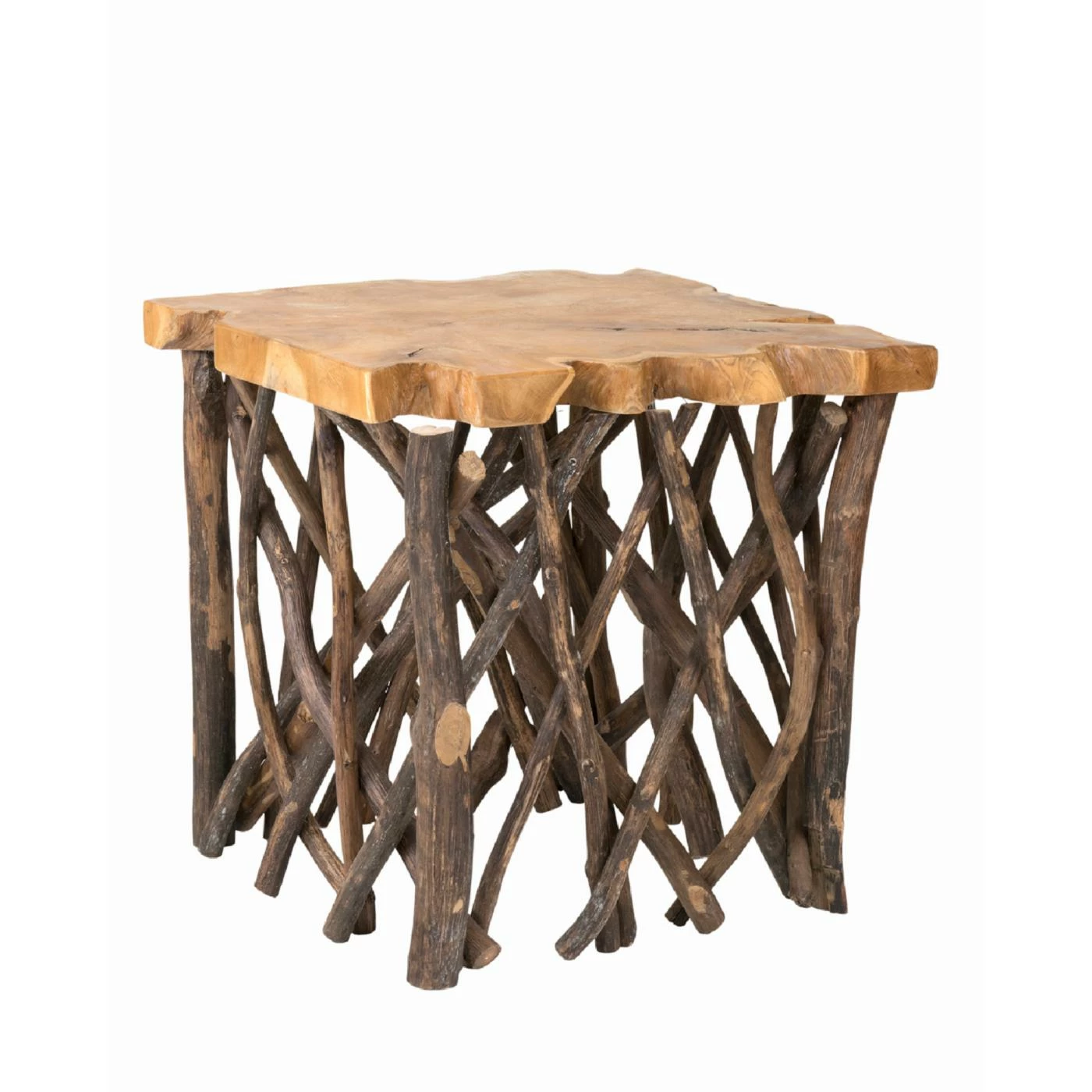 Bring the originality of mother nature into your home with this eye-catching end table! Crafted from reclaimed teak branches with a cross cut slab across the top, each piece is entirely unique. This whimsical design brings evocative charm to your living space! Overflowing with natural beauty, it makes the perfect perch for books of art and vases brimming with blooming buds. Variations due to natural materials and processes mean each piece is as unique as your style. Pair with colorful throw pillows and a comfy couch for a living room ready and waiting to entertain friends and family.