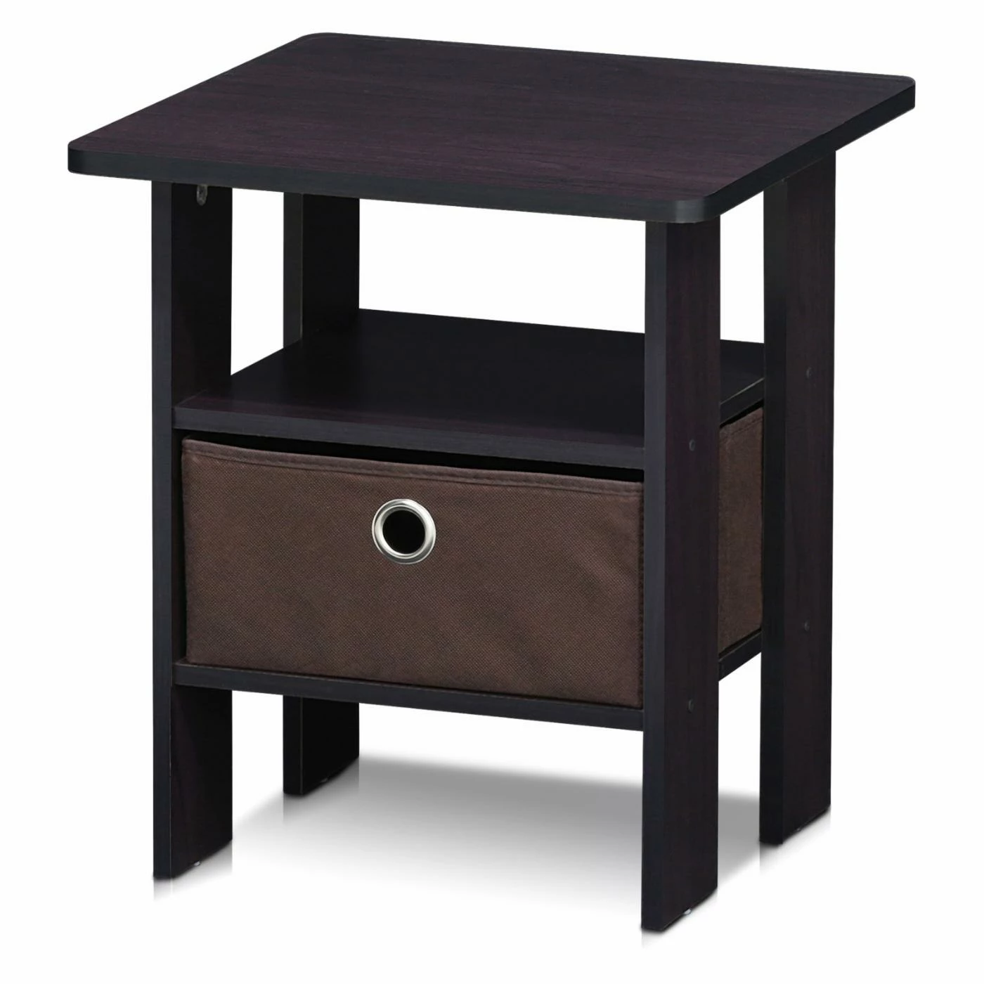 Lend contemporary flair to your living room or den with the Furinno Dark Walnut End Table. This end table features sturdy composite wood construction and a posh dark walnut finish. It features a lower fixed shelf that’s perfect for stowing your remote or tissue box. A lower drawer offers additional storage for your living space.