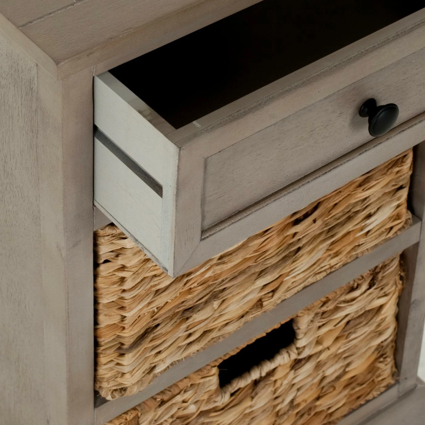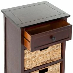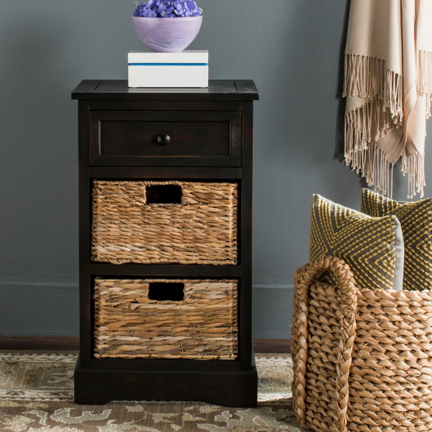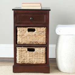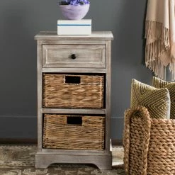 Declutter your rustic, coastal, or farmhouse seating area with the help of the HN Home Thornton Coastal Storage Side Table. You can slide the two woven rattan baskets out of the solid pine wood frame to quickly clean up toys, media, and other items cluttering up your living space. A top drawer provides a place for keeping essentials like reading glasses within easy reach of your favorite chair or the sofa.