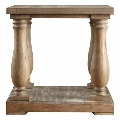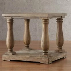 Robust baluster column supports give the HumbleNest Homestead Antique Farmhouse End Table its architectural appeal. This end table is well built with pine and veneers and is complete with your choice of available, well-distressed finish option. For twice the display space, it offers a planked top and matching base shelf.
