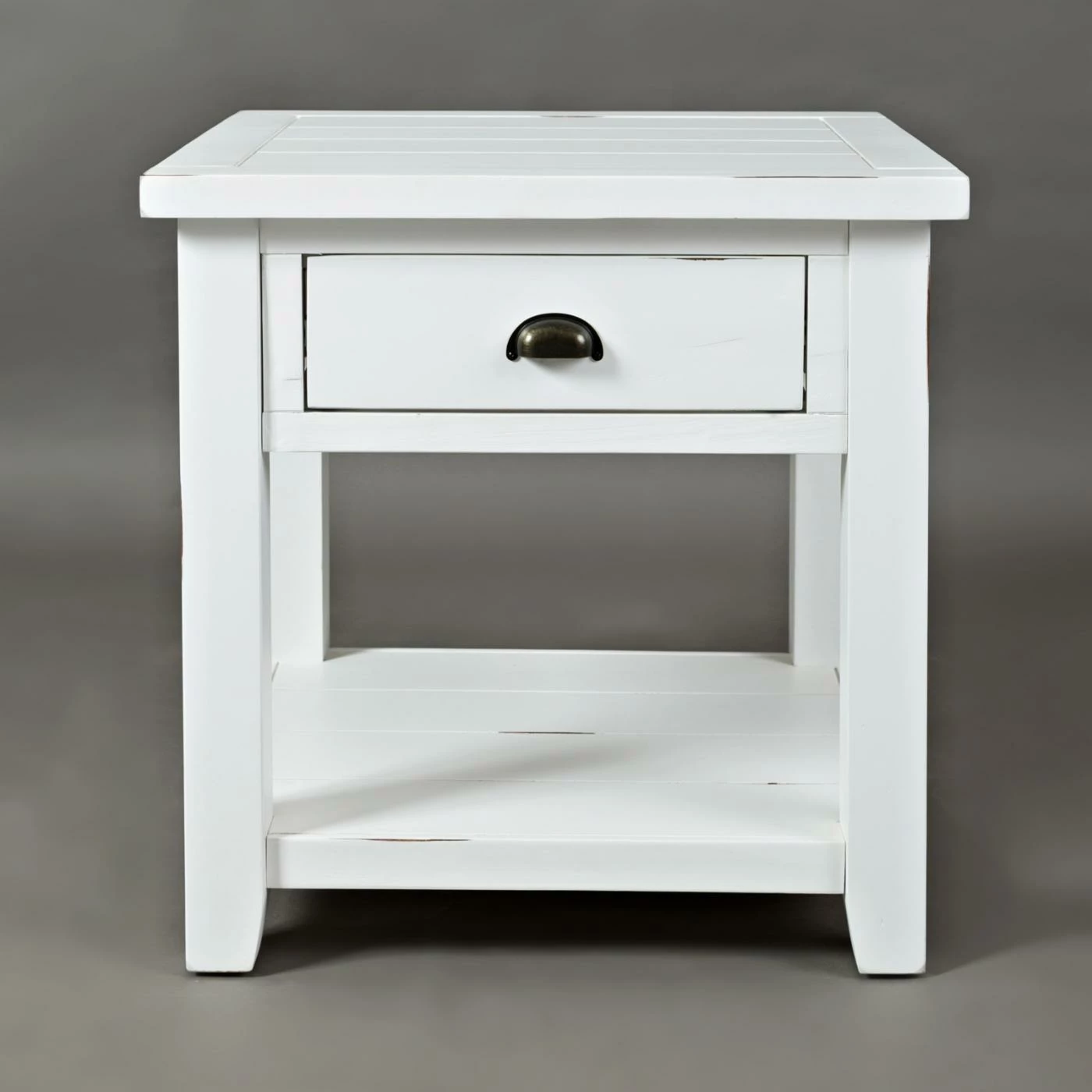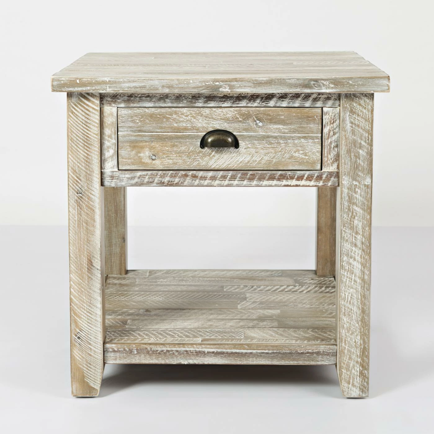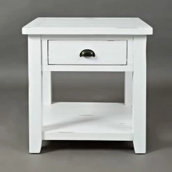 Your living room wonβt be complete without the Jofran Artisans Craft End Table. With its farmhouse style and your choice of available finishes, this end table complements any home in a fetching fashion. Its sturdy, solid hardwood construction is designed to withstand the rigors of everyday life, making it the perfect choice for high-traffic areas.
