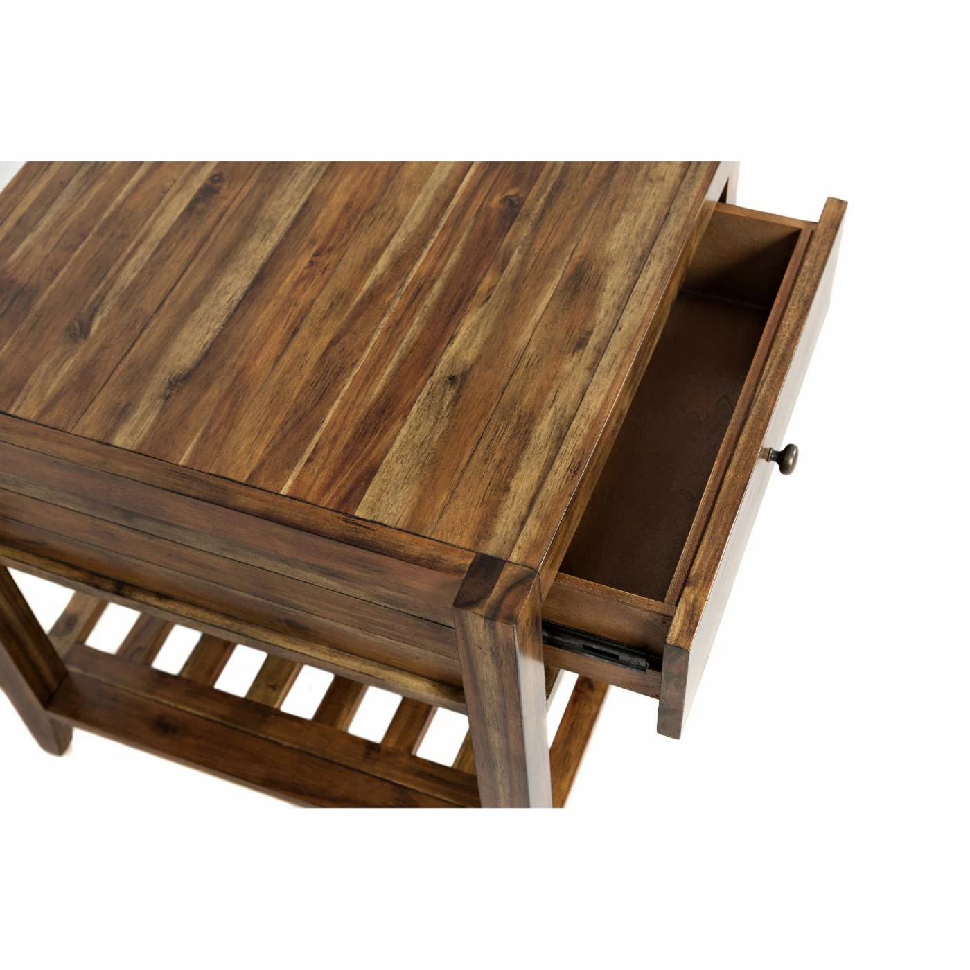 Liven up your living room or bedroom with the addition of this Jofran Beacon Street End Table. Crafted of wood and finished in a soothing brown hue that complements virtually any decor. This contemporary end table features one drawer and a bottom shelf for ample storage space.