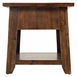 Add rich texture to your living room with the Jofran Painted Canyon End Table, or use this perfectly proportioned end table as a nightstand. The drawer front is lightly whitewashed, while throughout, the wood has an intriguing rough-hewn texture. Angled legs create a craftsman feel.