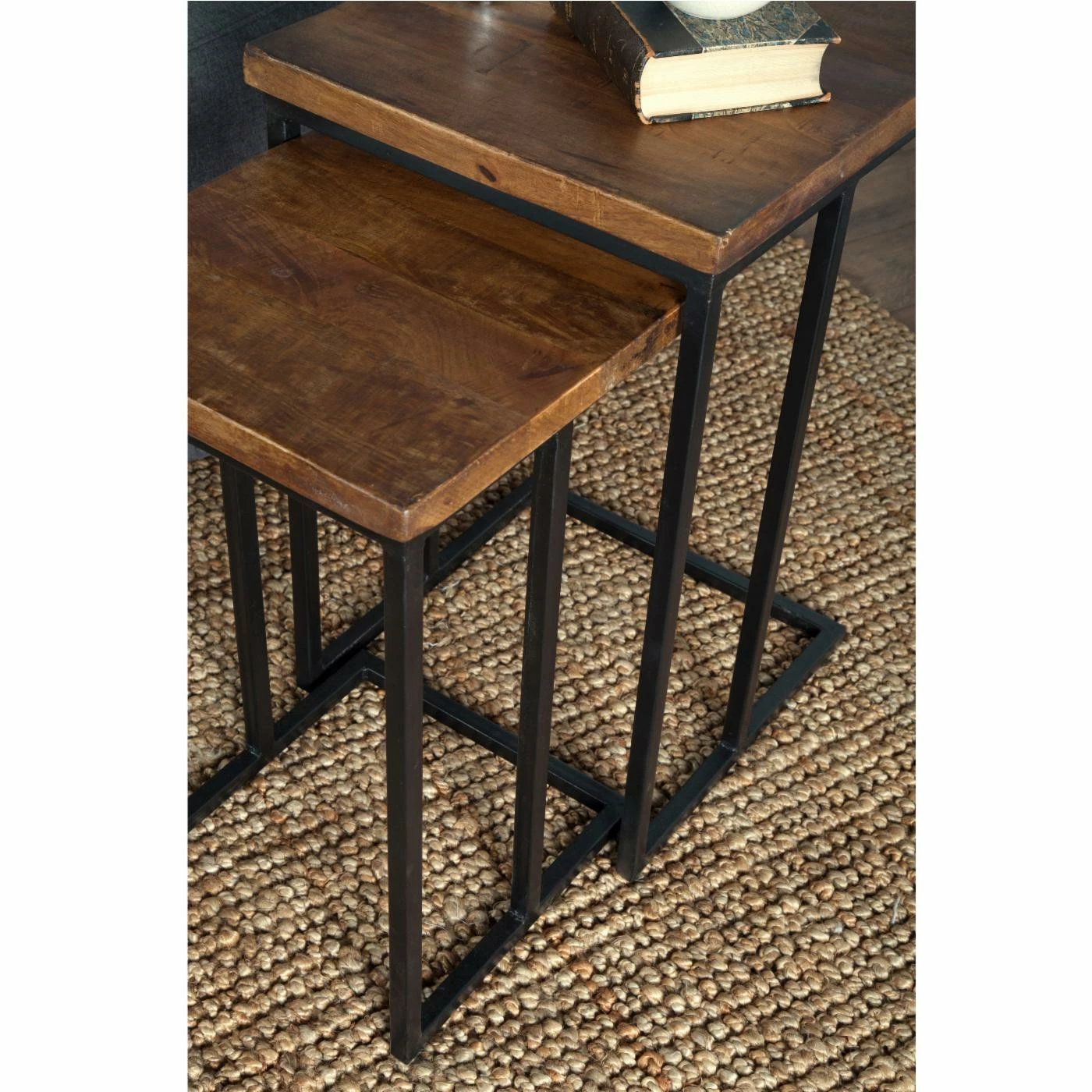 We adore the flexibility and stackability of the Kosas Home Lynda Nesting Tables. Dress up the side of your couch, bed, or armchair with this two-piece set of nesting tables. This set includes a small and large table that fit perfectly together. Functional and versatile, these nesting tables feature an iron frame finished in black and a mango wood top with a mahogany finish. The mix of materials and contrasting finishes enhance the rustic yet modern design.