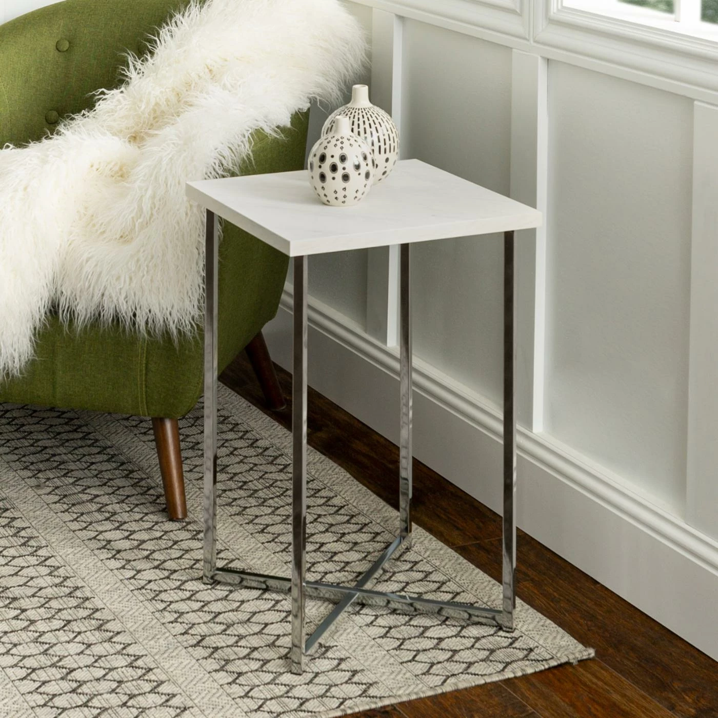 The Manor Park Modern Bohemian Square End Table proves that there is beauty in simplicity. This chic modern end table boasts a square laminate tabletop that is the perfect size for drinks, remotes, books, or other small items you would like to keep close at hand. The square tabletop and criss-cross frame come in your choice of available colors to best suit your unique style and taste. Equally suitable as an end table or a nightstand, two of this table will make a lovely and functional pair.