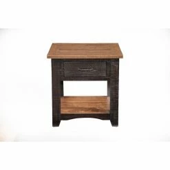 - Rough-hewn saw marks and distressing