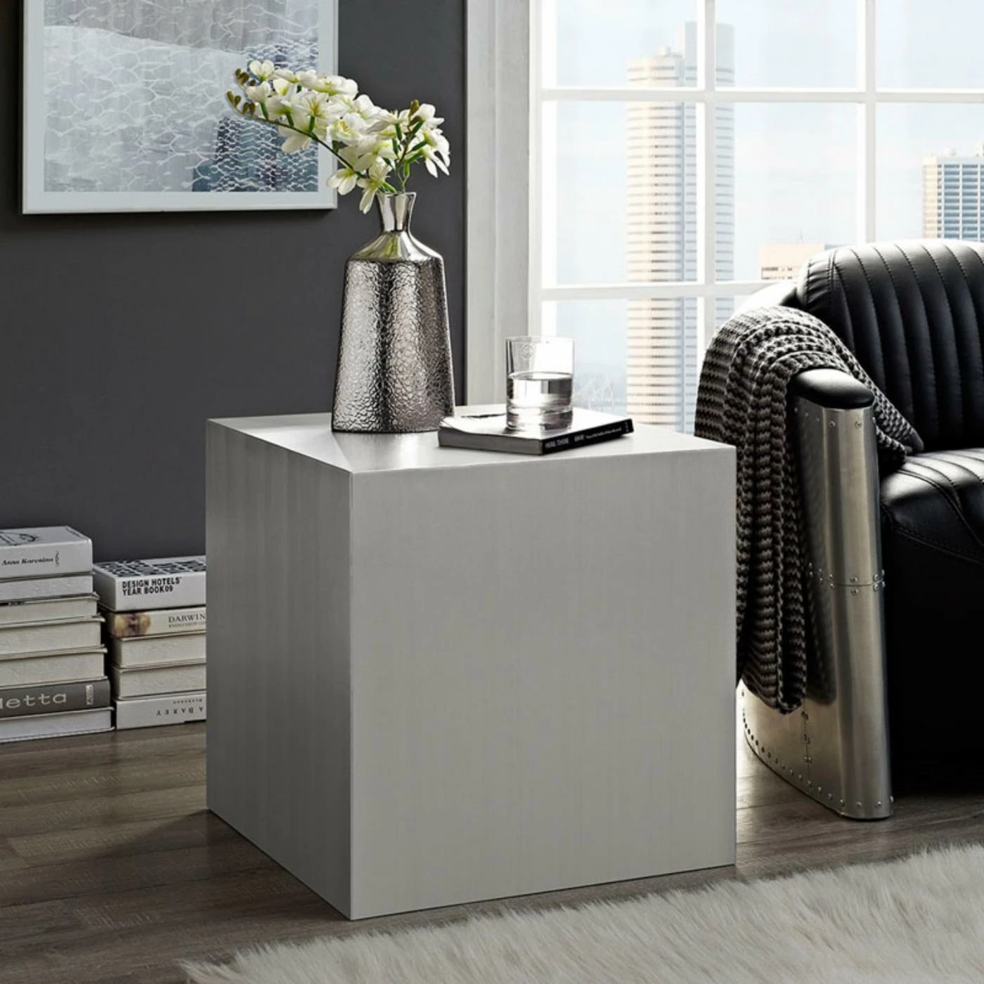 Sometimes simpler is better, and with the clean lines and straightforward design of the Modway Cast Stainless Steel Side Table, simpler means the perfect accent in contemporary home decor. This chic side table is constructed of stainless steel sheets that have been skillfully welded together to create one seamless cube. Its brushed stainless steel finish lends a modern touch to any room in your home. Non-marking foot glides on the bottom of the table mean your floors will be protected as you add sleek style that lasts for years in your home.
