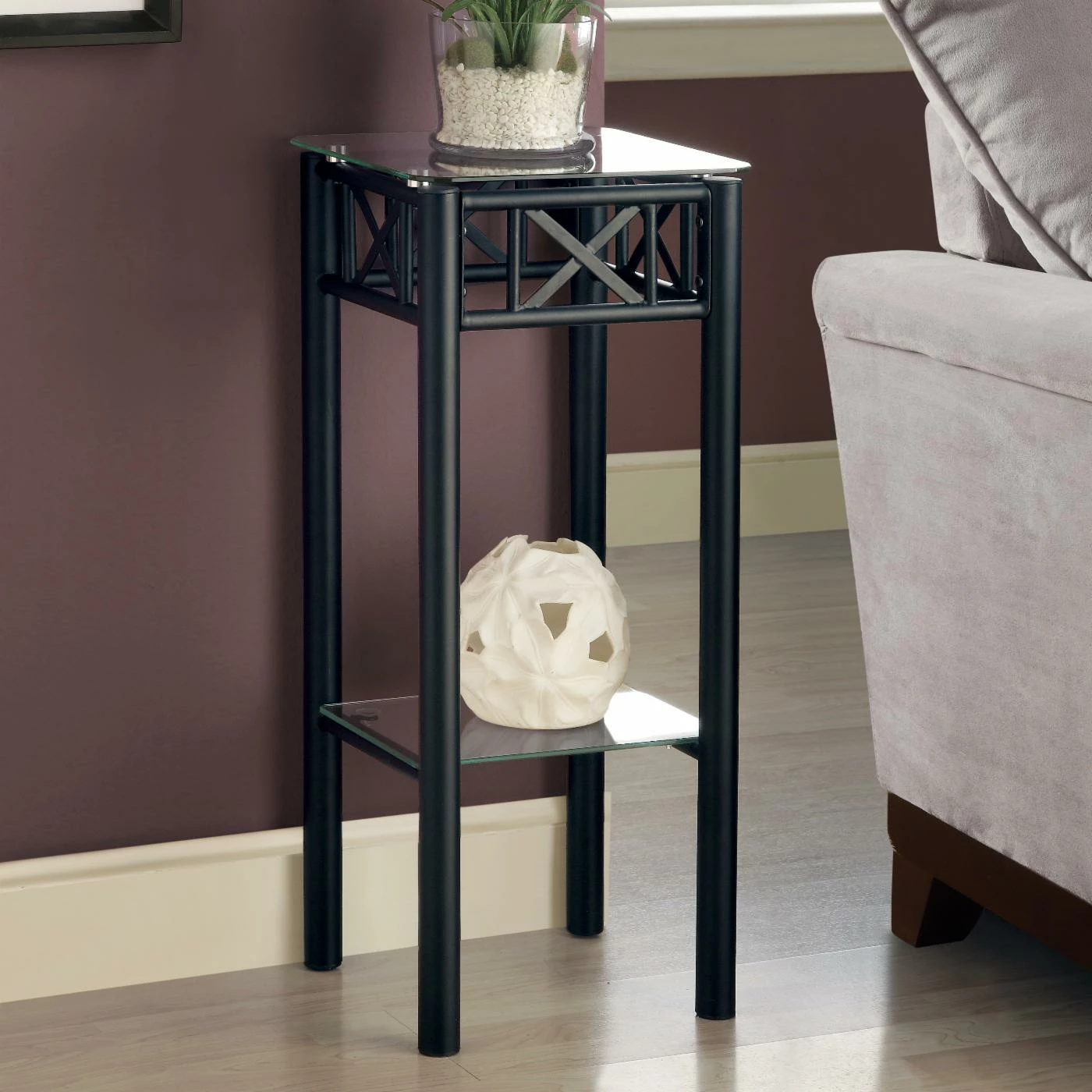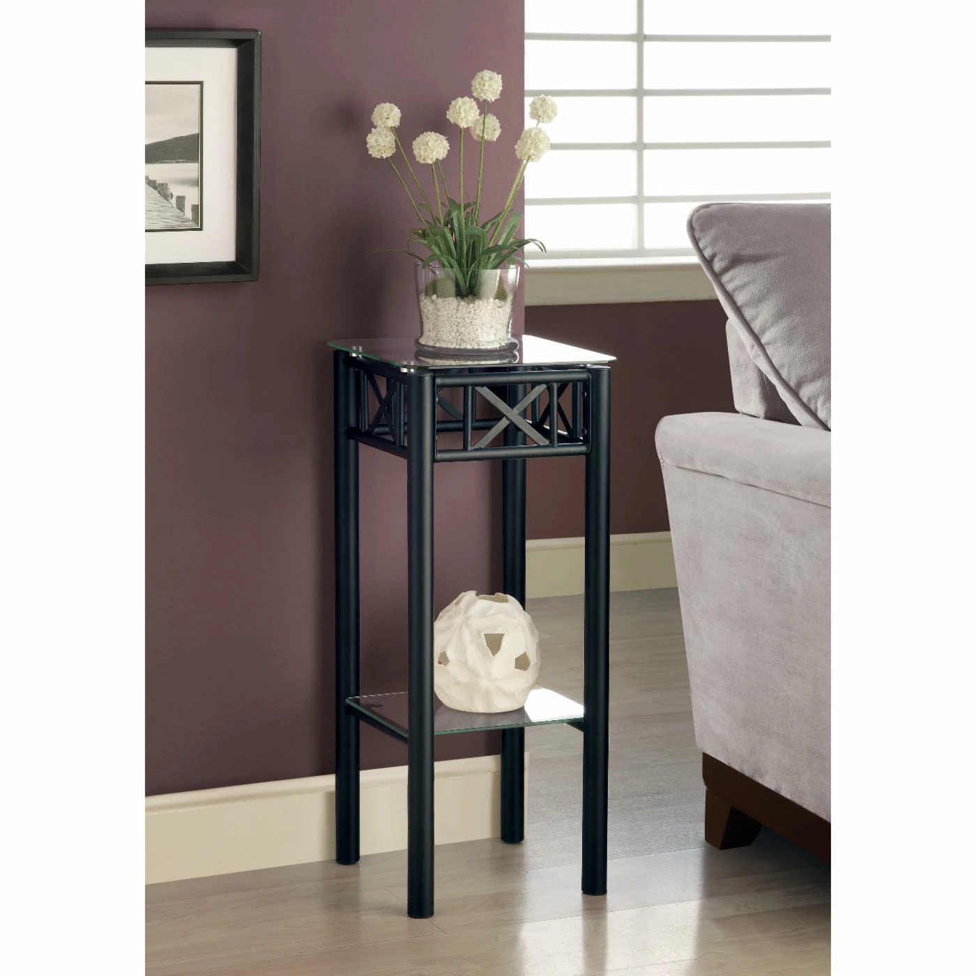 Whether Phalaenopsis orchid, African violet, or the blooms from your plant-of-the-month club, the Monarch Specialties I Plant Stand – Black will hold them in style. Built of durable metal in a modern black, this plant stand features an X-design top on all four sides and clear tempered-glass top and bottom shelves for your plants or decorative items. Some assembly is required.