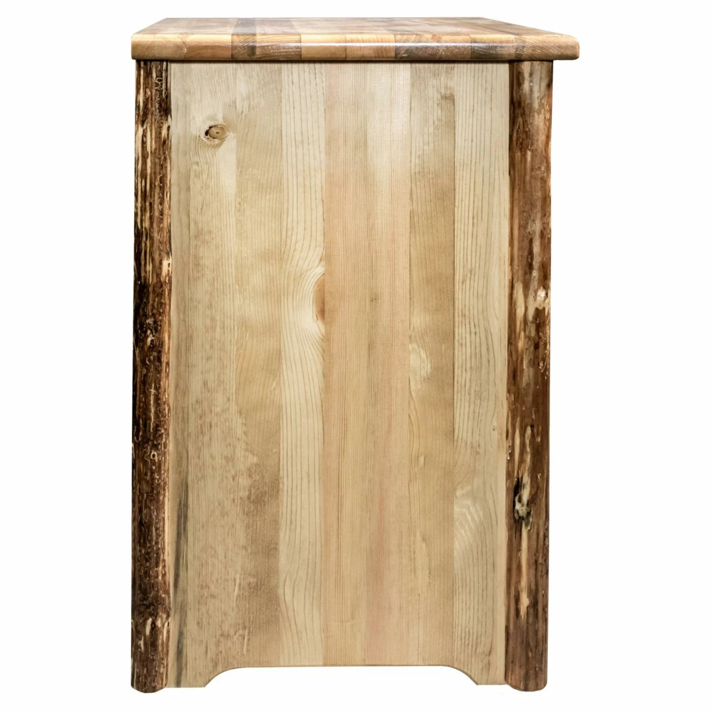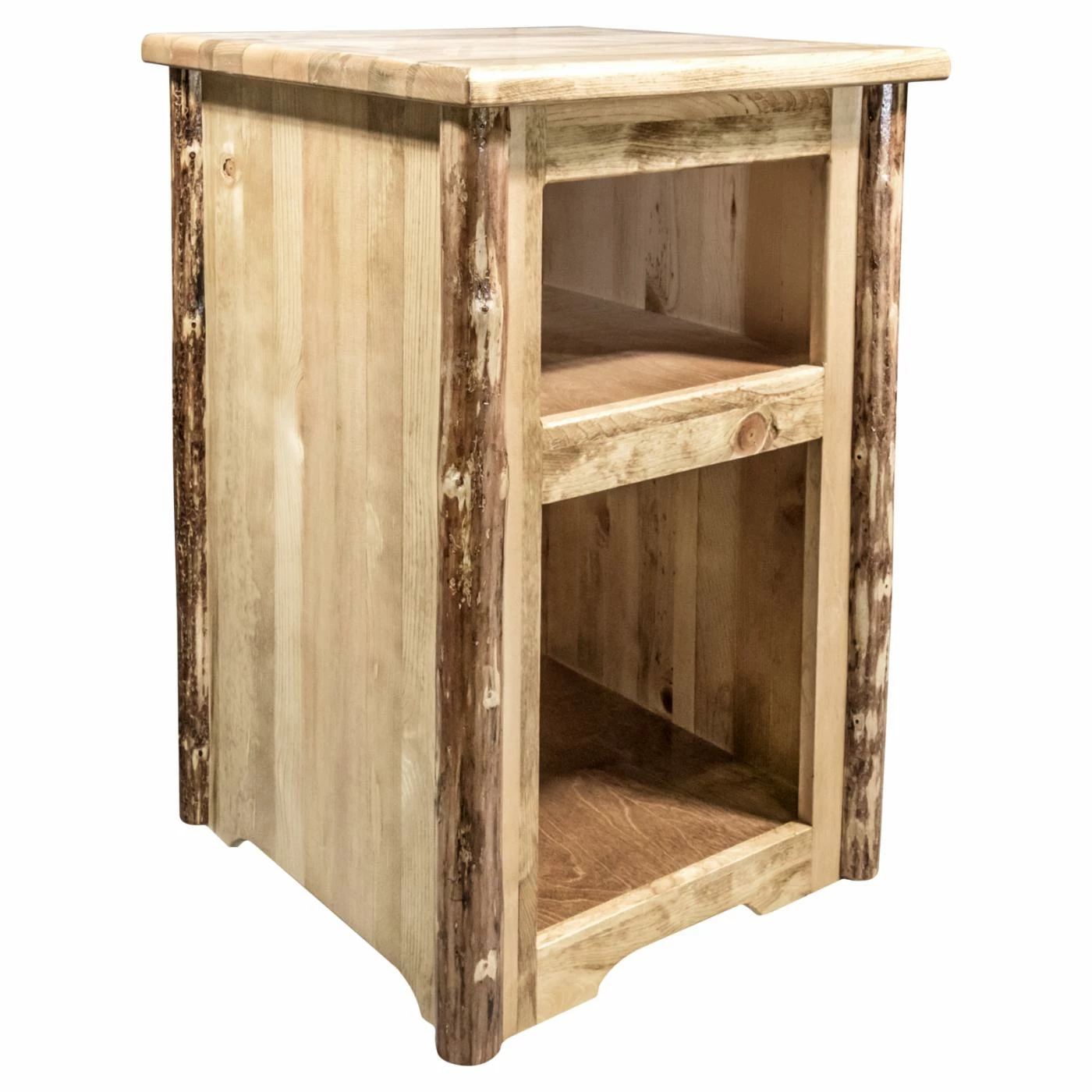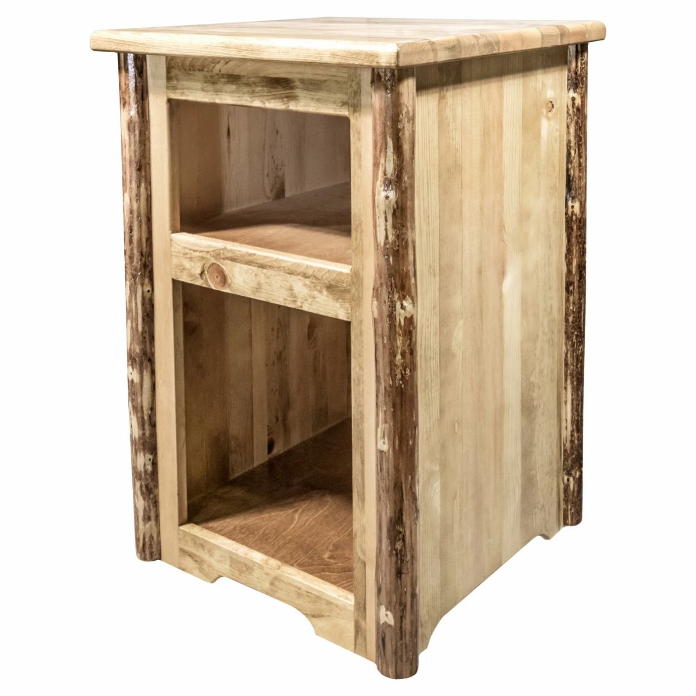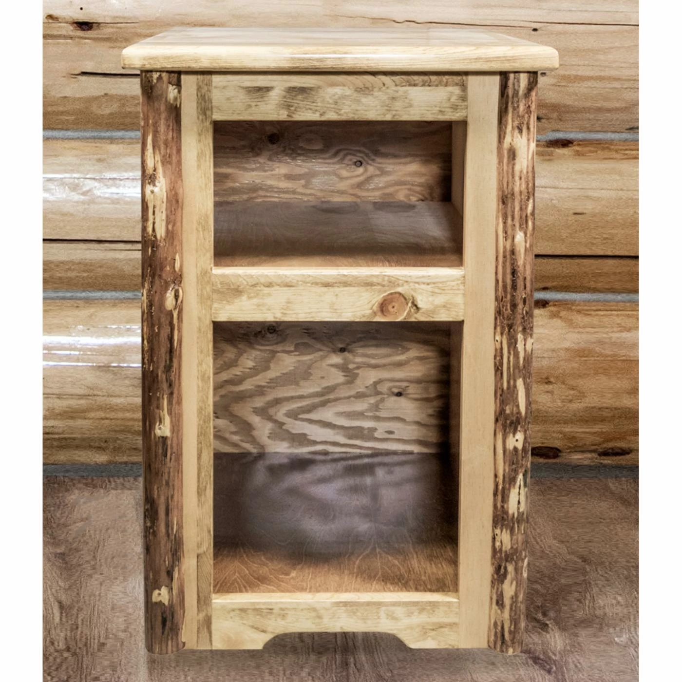 Add a rustic touch to your bedside with the Montana Woodworks Glacier Country End Table. Two open storage spaces provide ample space for storing books, remotes, electronics, and more. The skip-peeled appearance of this end table brings a unique touch to its solid American-grown pine construction. Made in Montana, this handcrafted end table offers lasting durability in style.