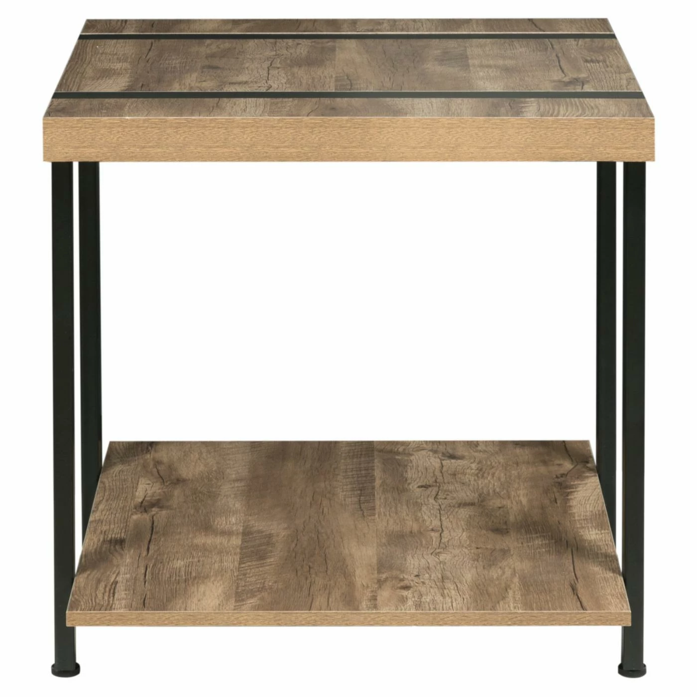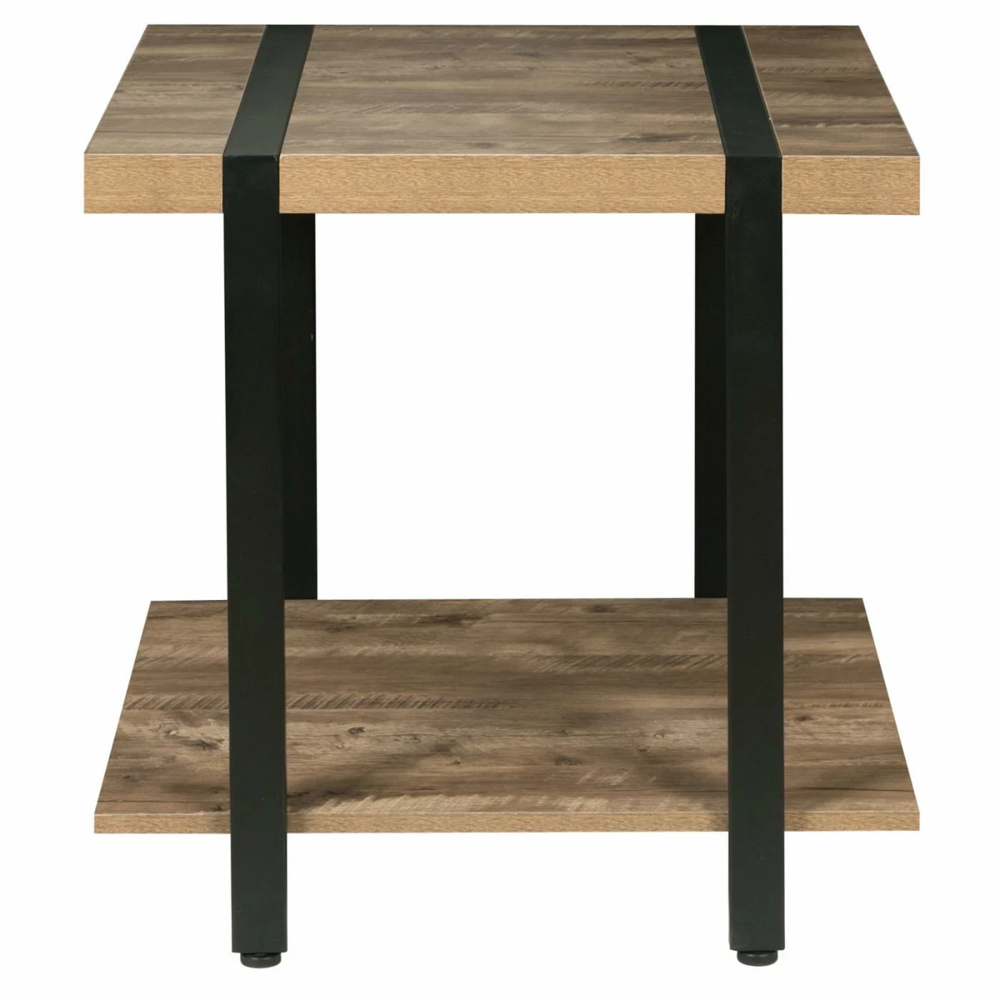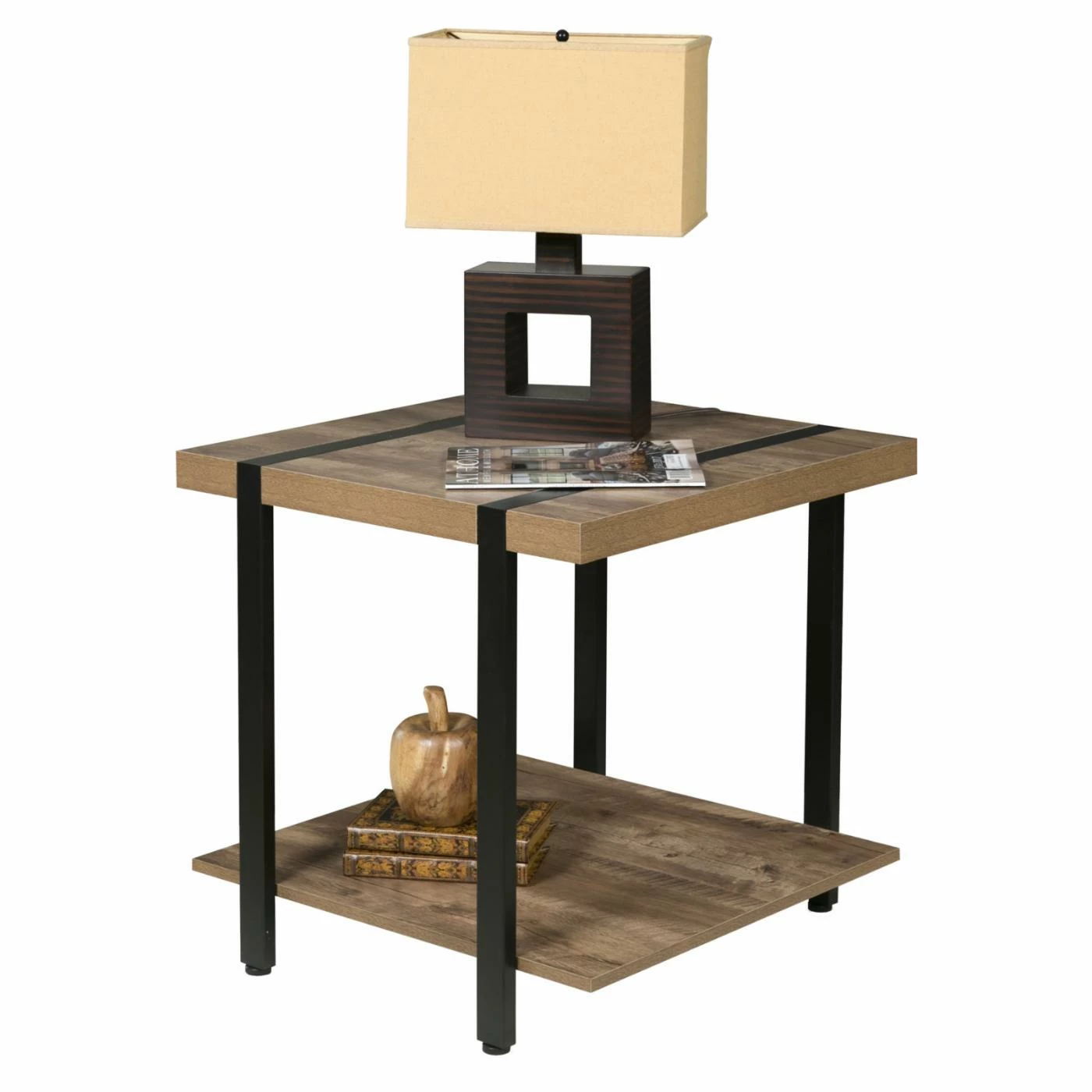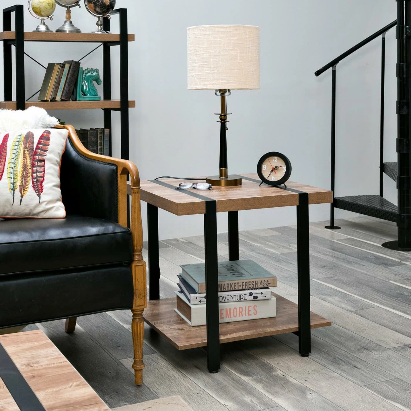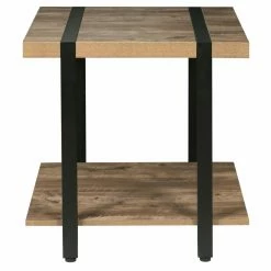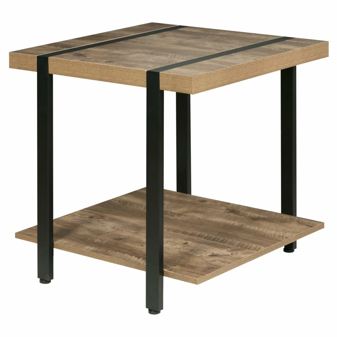 Complete the sitting area in your family room or living room with the OneSpace Bourbon Foundry End Table. This end table boasts an engineered wood construction with steel accents. The natural oak and black finishes complement any home. An open shelf on the bottom delivers ample storage for books, blankets, or decorative accessories.