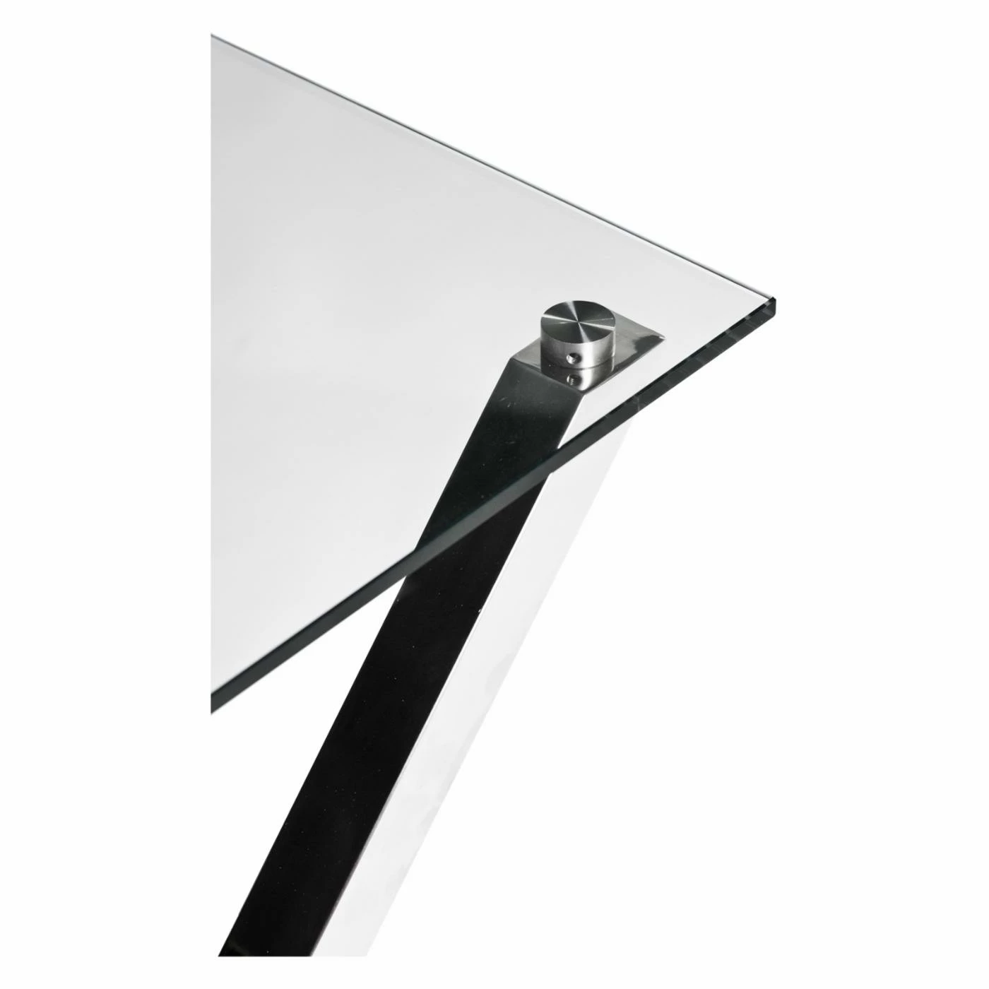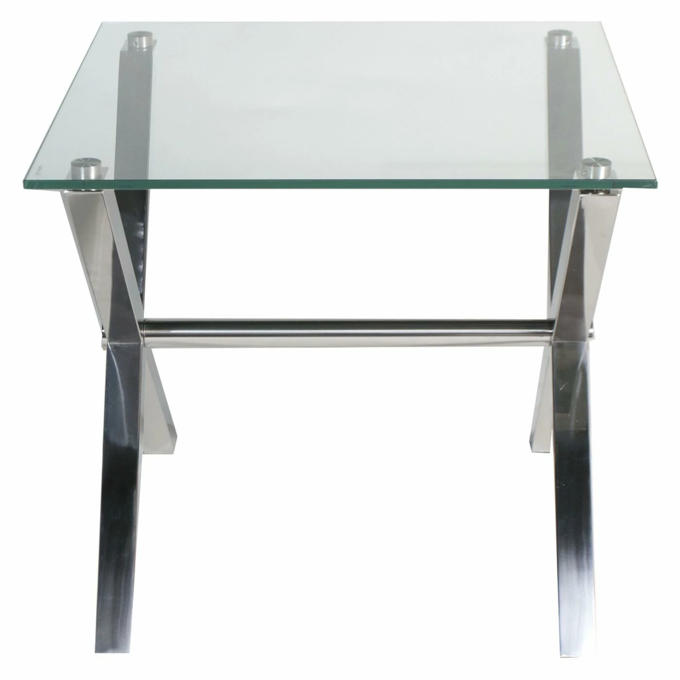 Make your living space shine with the Pangea Home Ella Side Table. Shatter-resistant tempered glass and highly polished steel give this minimalist modern table a sleek appearance. The top screws onto the X-shaped legs and is strengthened and stabilized by a horizontal stretcher. With its transparent top and open base, the table is an ideal choice for small seating areas and will help to keep them feeling open and spacious.